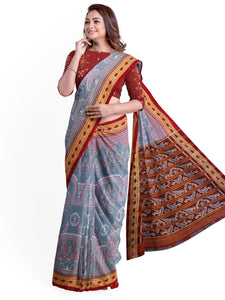 Grey and Black Khandua Silk Saree