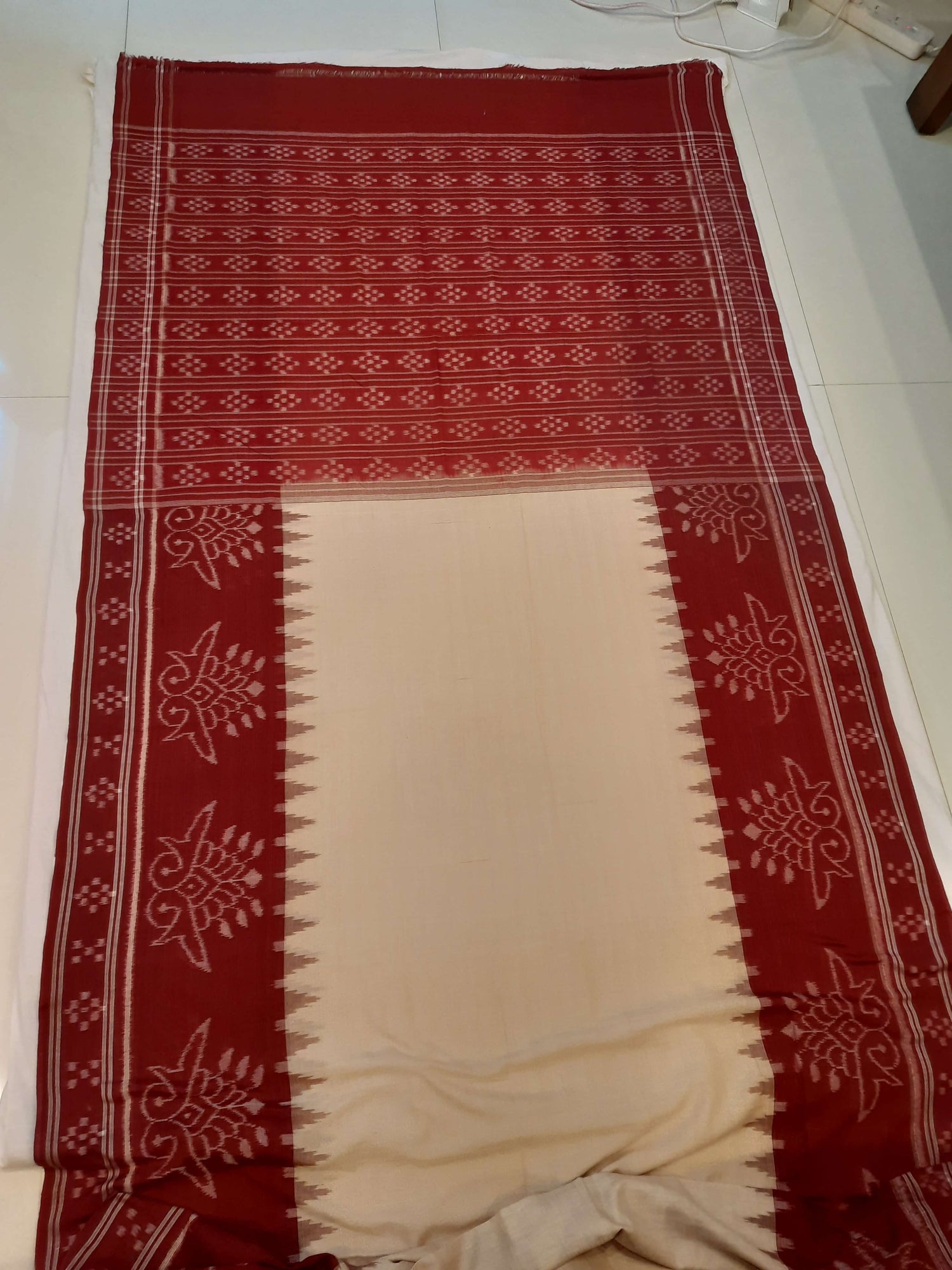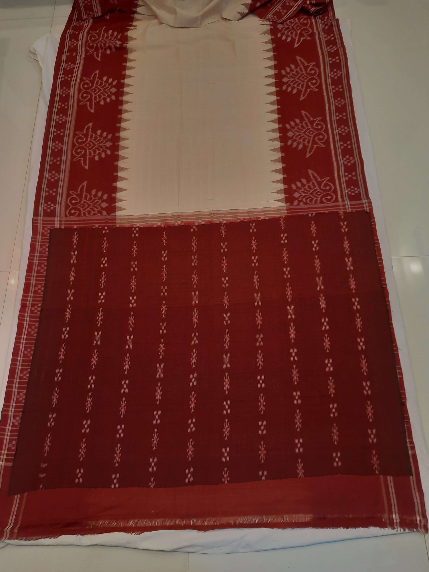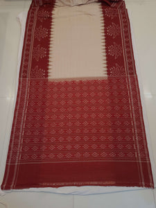 Beige with Maroon Odisha Ikat saree with cotton ikat blouse piece
