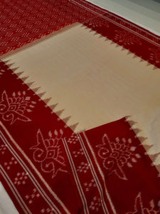 Off-white with Red Cotton Odisha Ikat saree with cotton ikat blouse piece