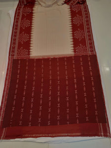 White with Red Cotton Odisha Ikat saree with mix match cotton ikat blouse piece