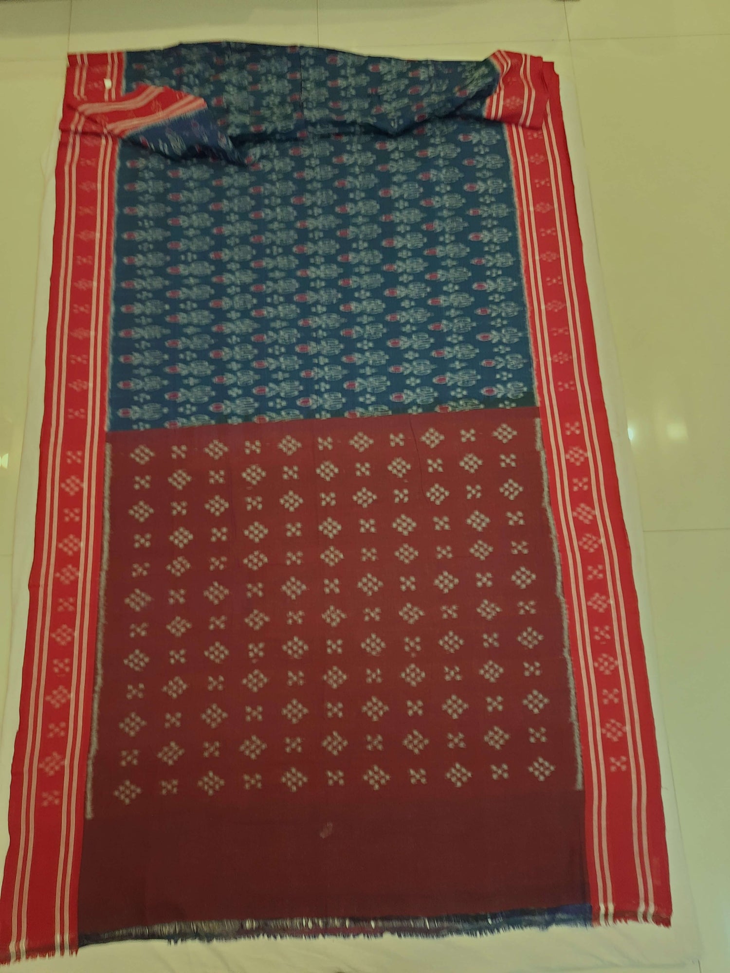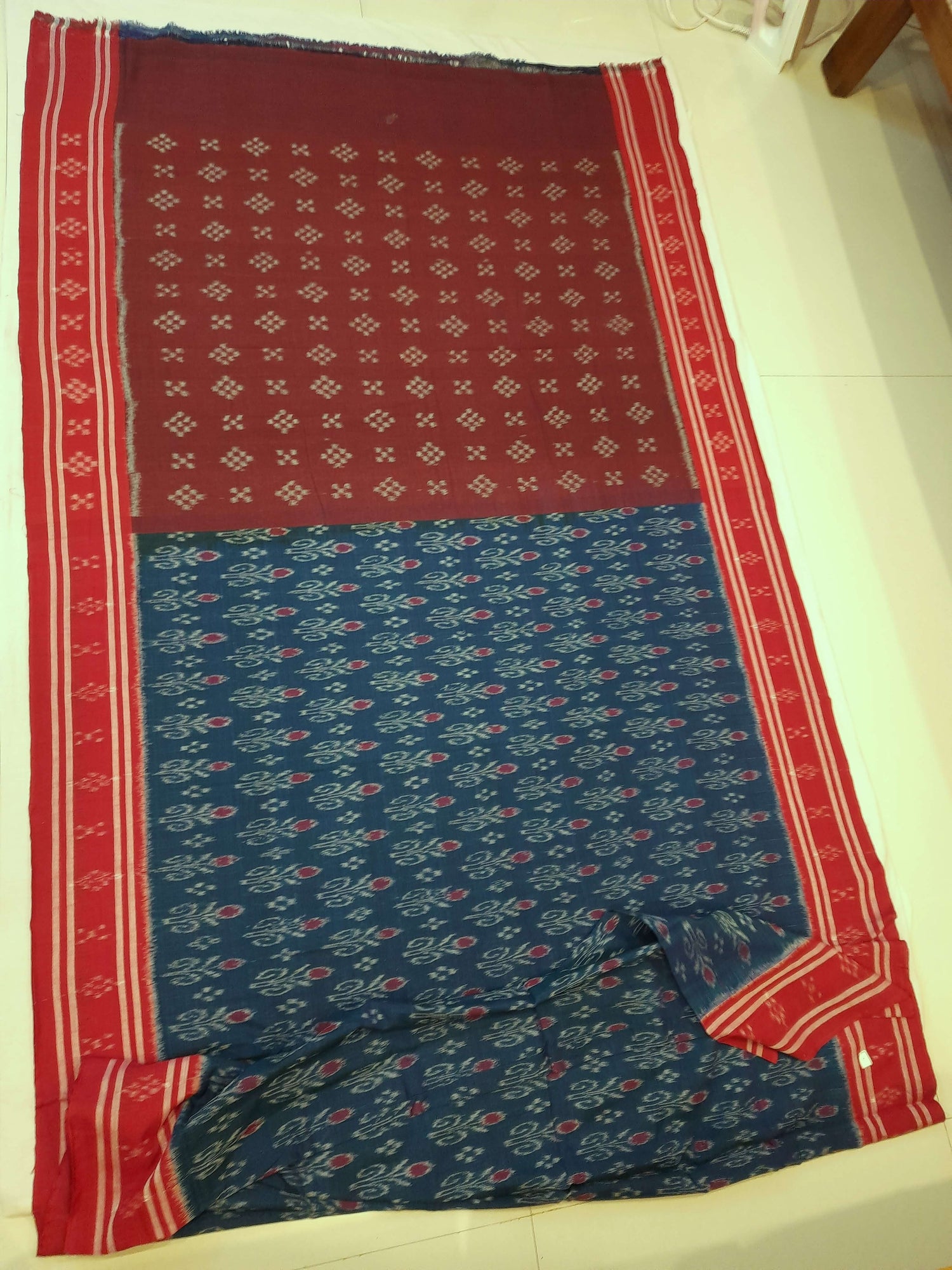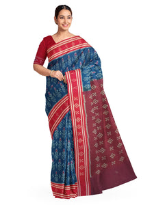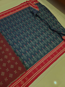• Blue with Red Cotton Odisha Ikat Saree