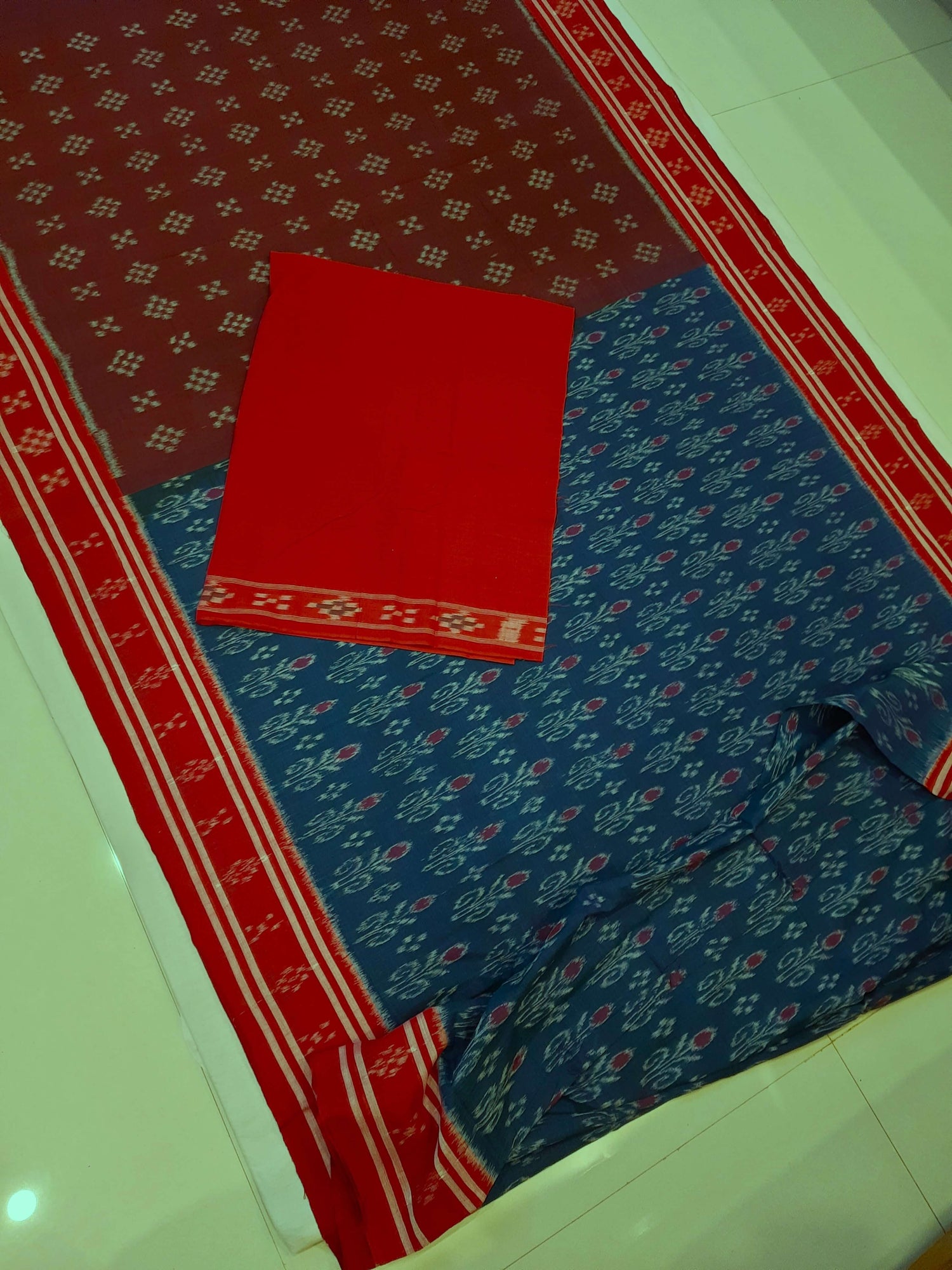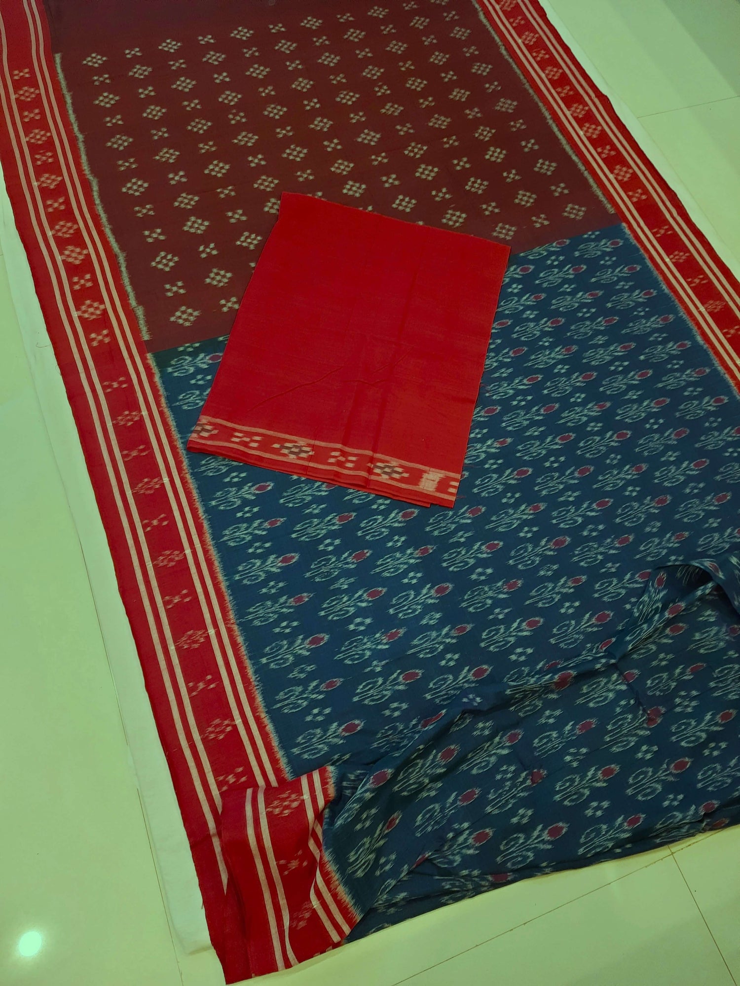 • Matching Red cotton ikat blouse Piece