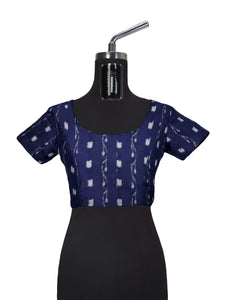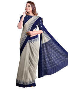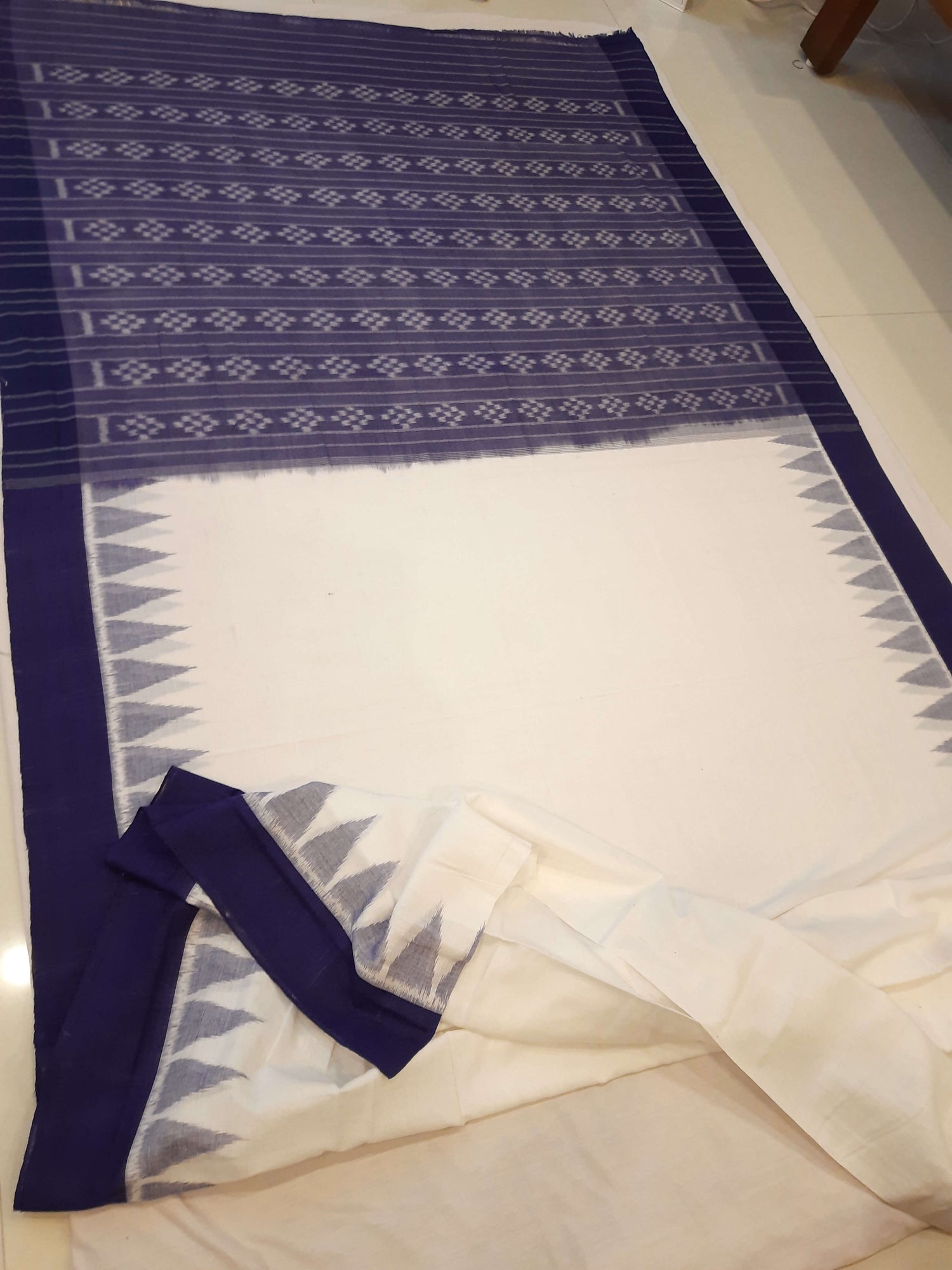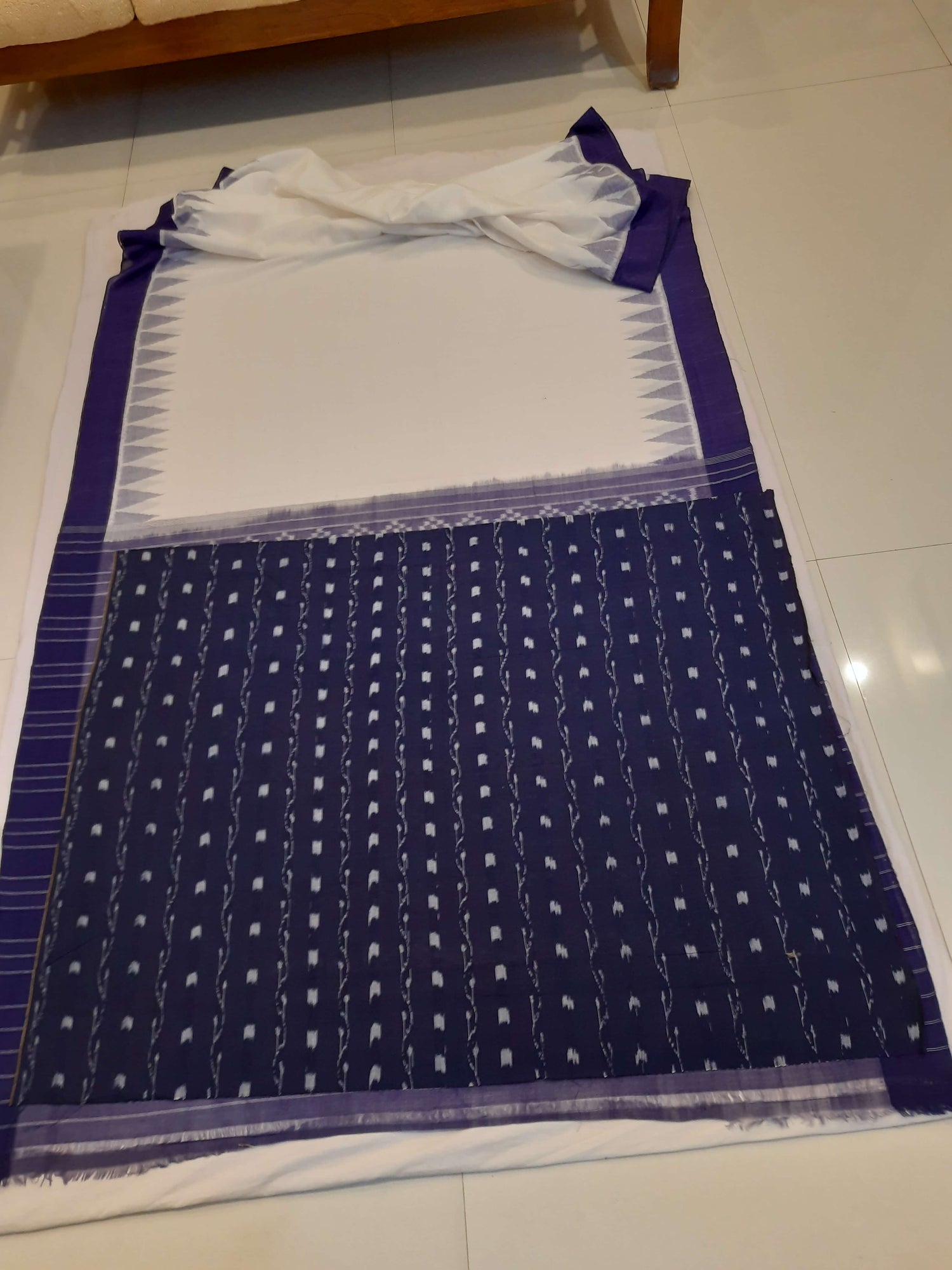 White and Blue coloured Odisha Ikat saree with cotton ikat blouse piece