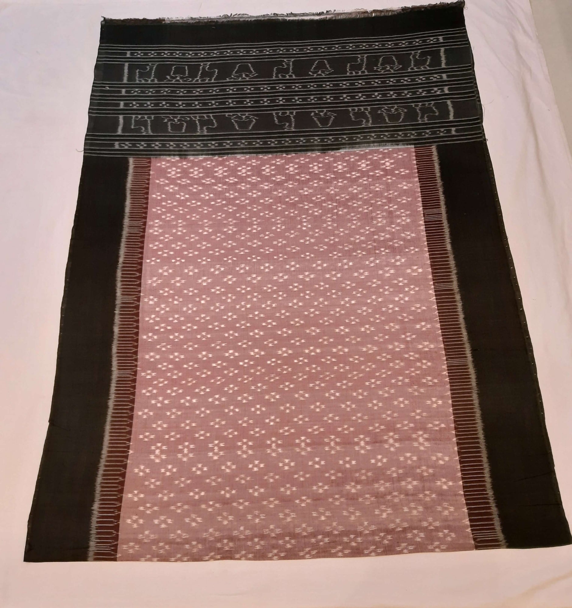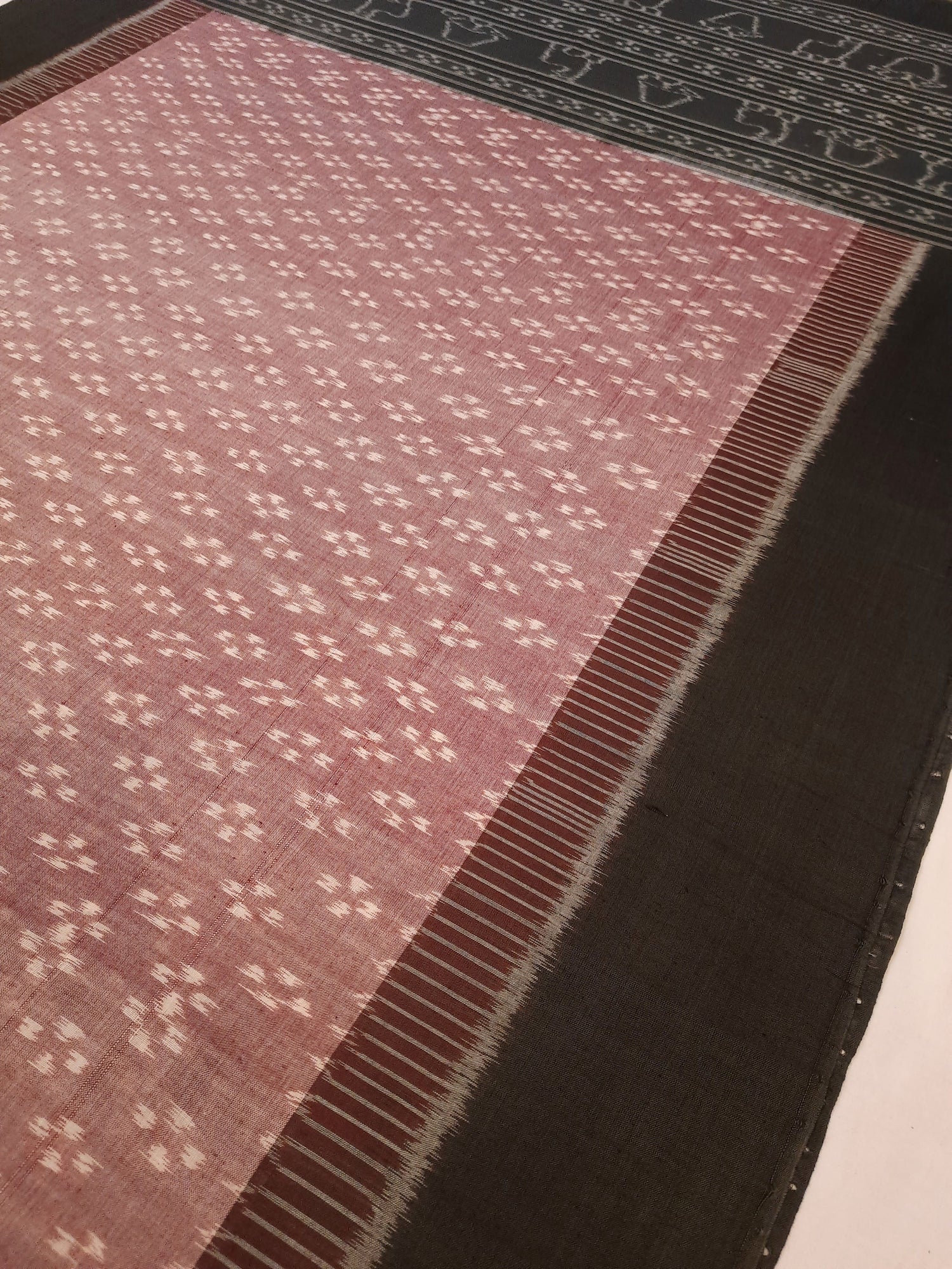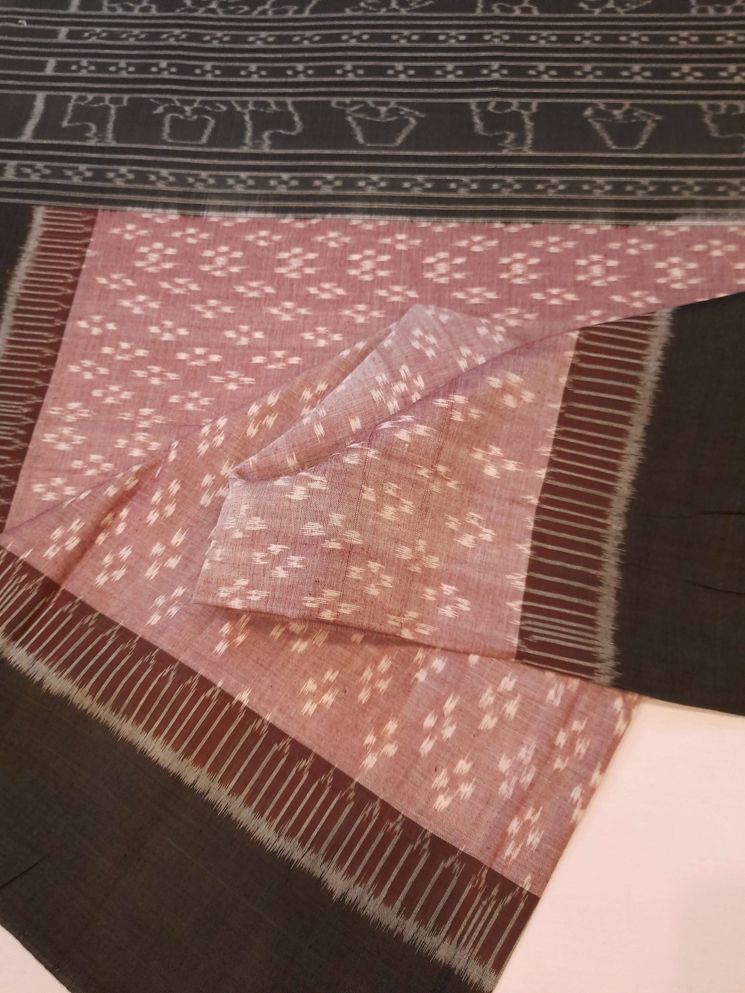 Beige with Maroon Odisha Ikat saree with cotton ikat blouse piece