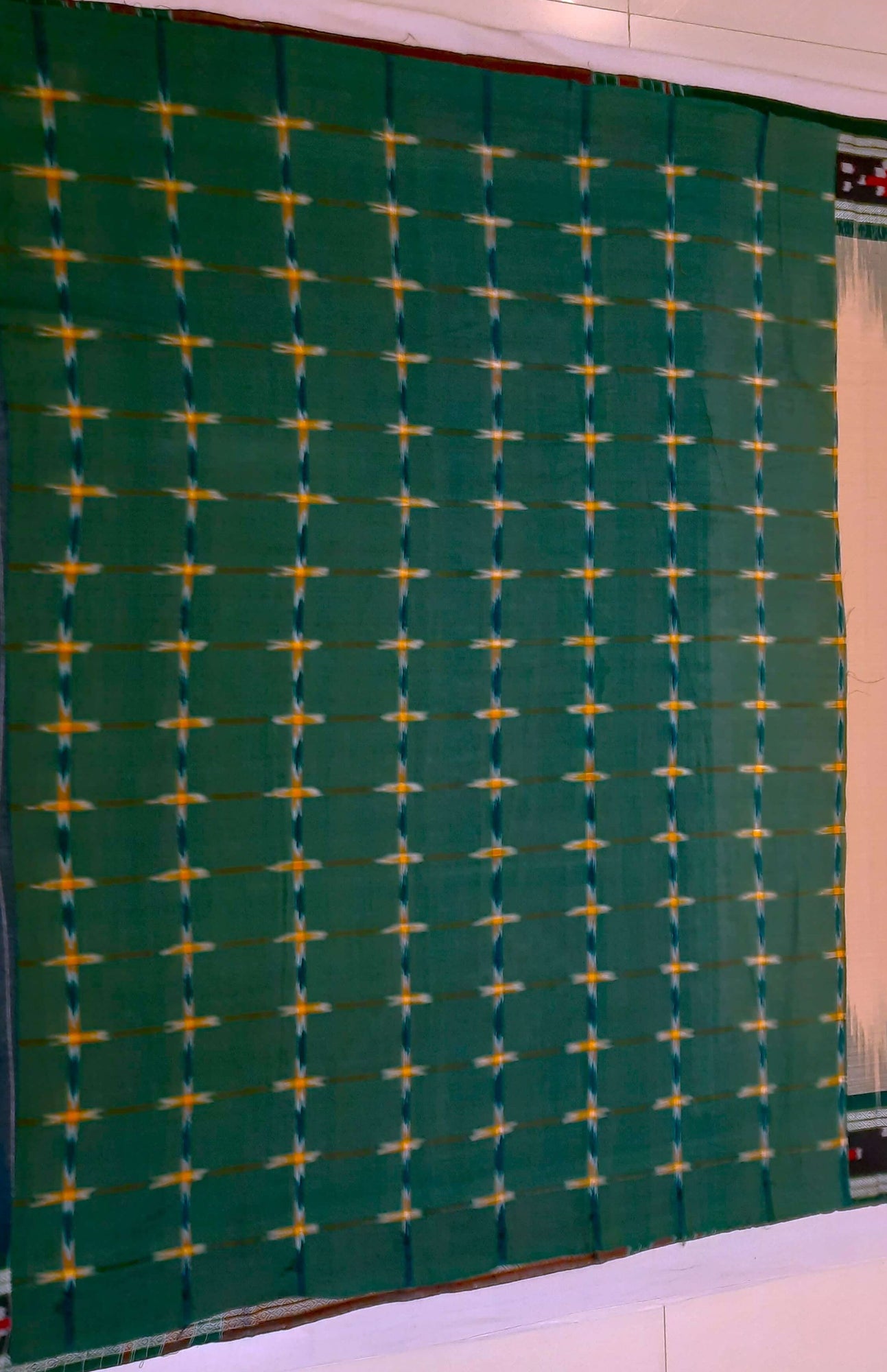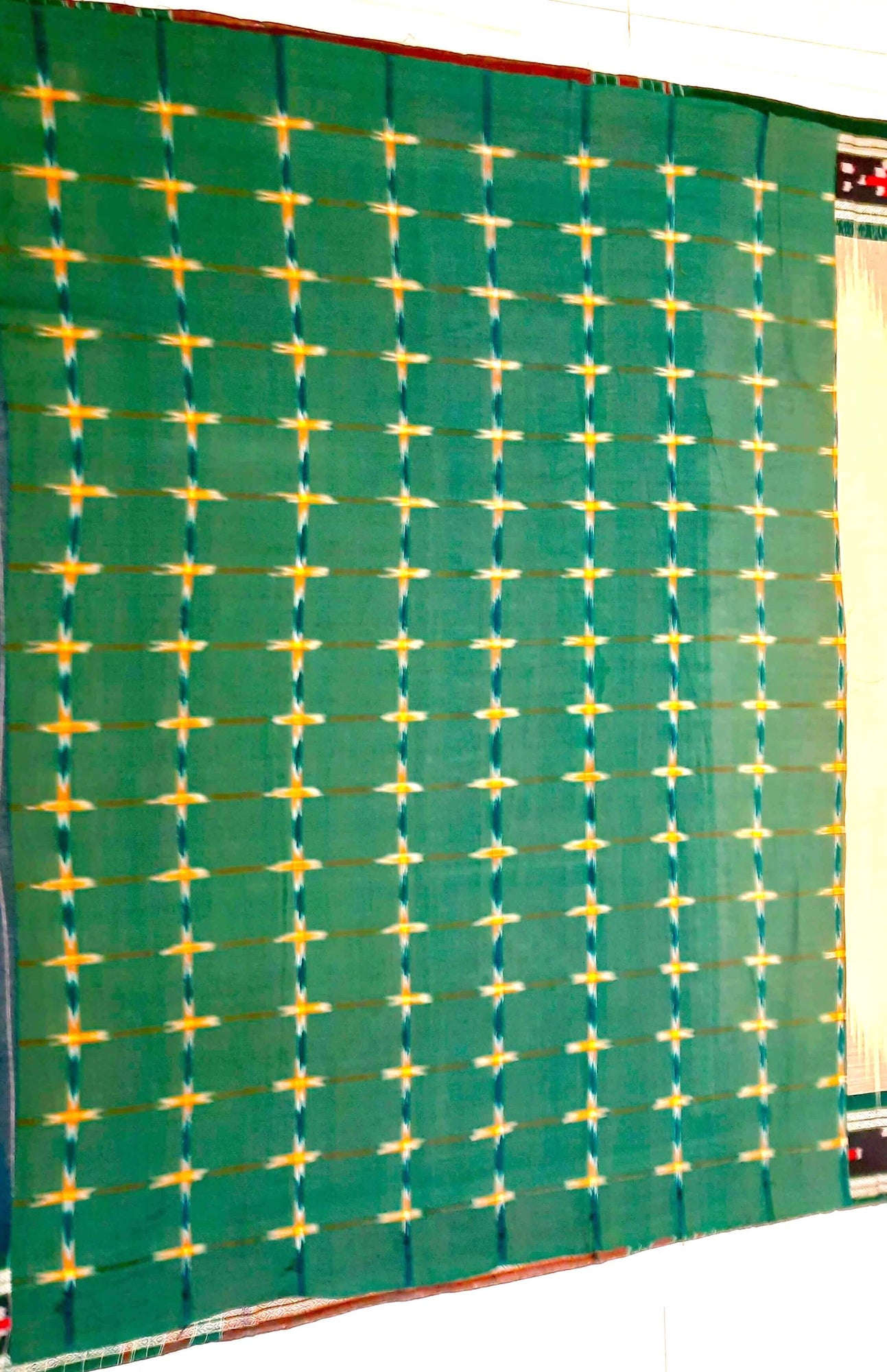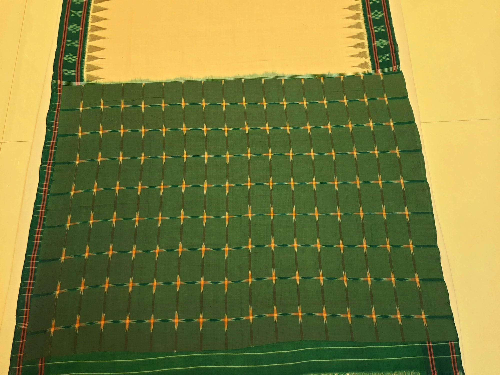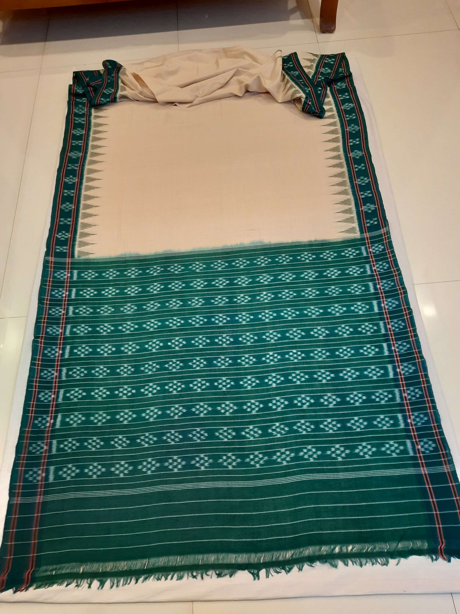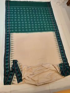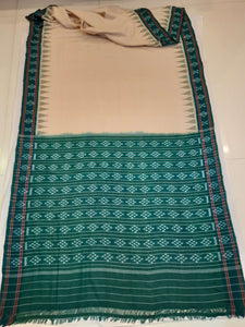 Beige with Green Cotton Odisha Ikat saree with green cotton ikat blouse piece