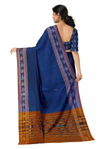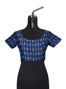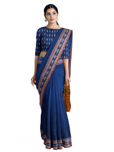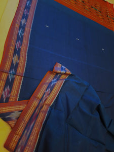 Blue Cotton Odisha Ikat saree with mix match cotton ikat blouse