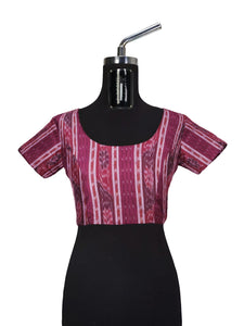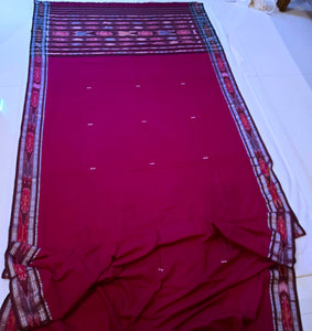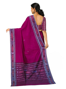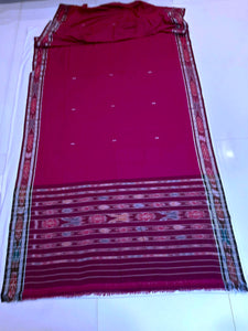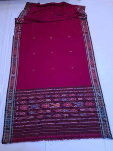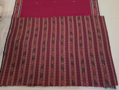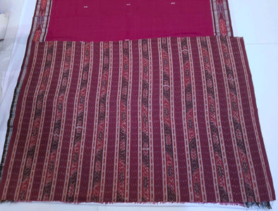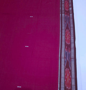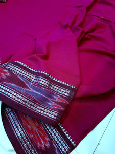 DarkPink Cotton Odisha Ikat saree with mix match cotton ikat blouse