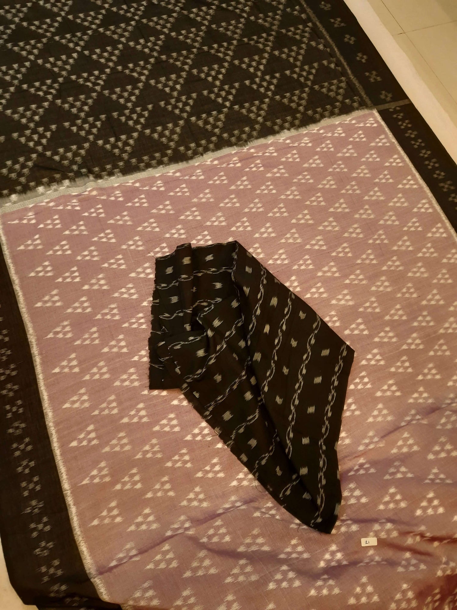 Light Lavender Odisha Ikat saree with cotton ikat blouse piece