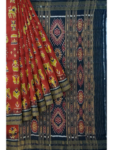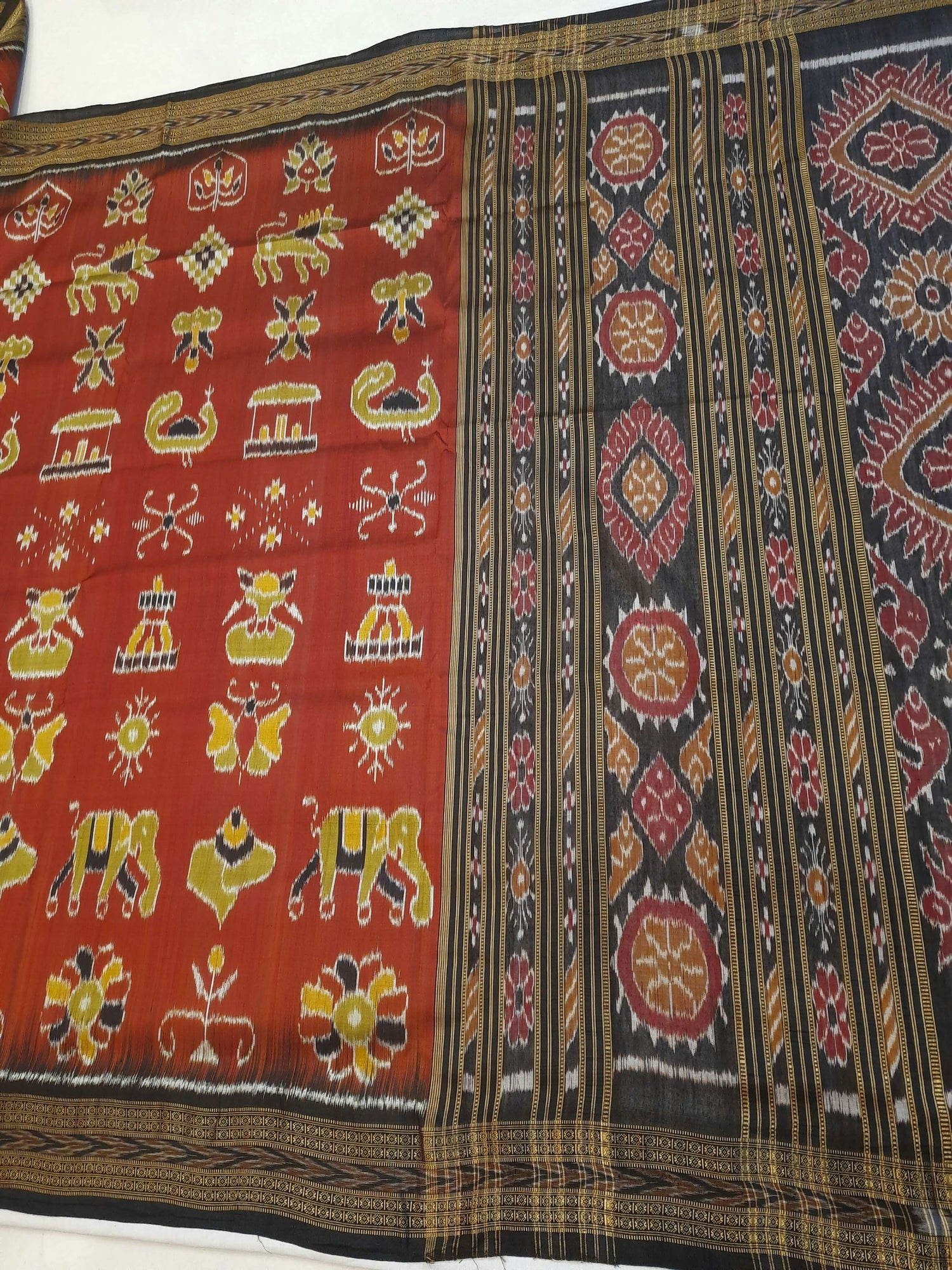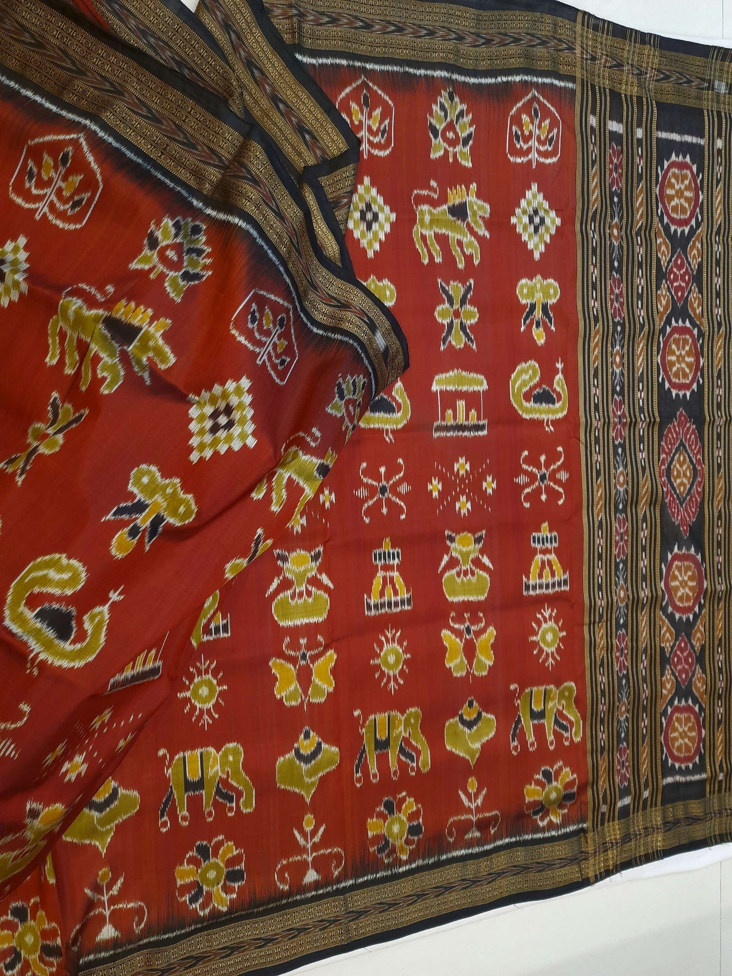 - Maroon Nabakothi inspired Khandua Silk Saree