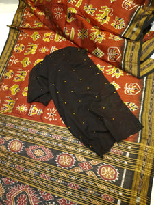 Maroon Odisha Khandua Pata Silk Saree paired with cotton ikat blouse piece