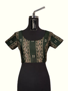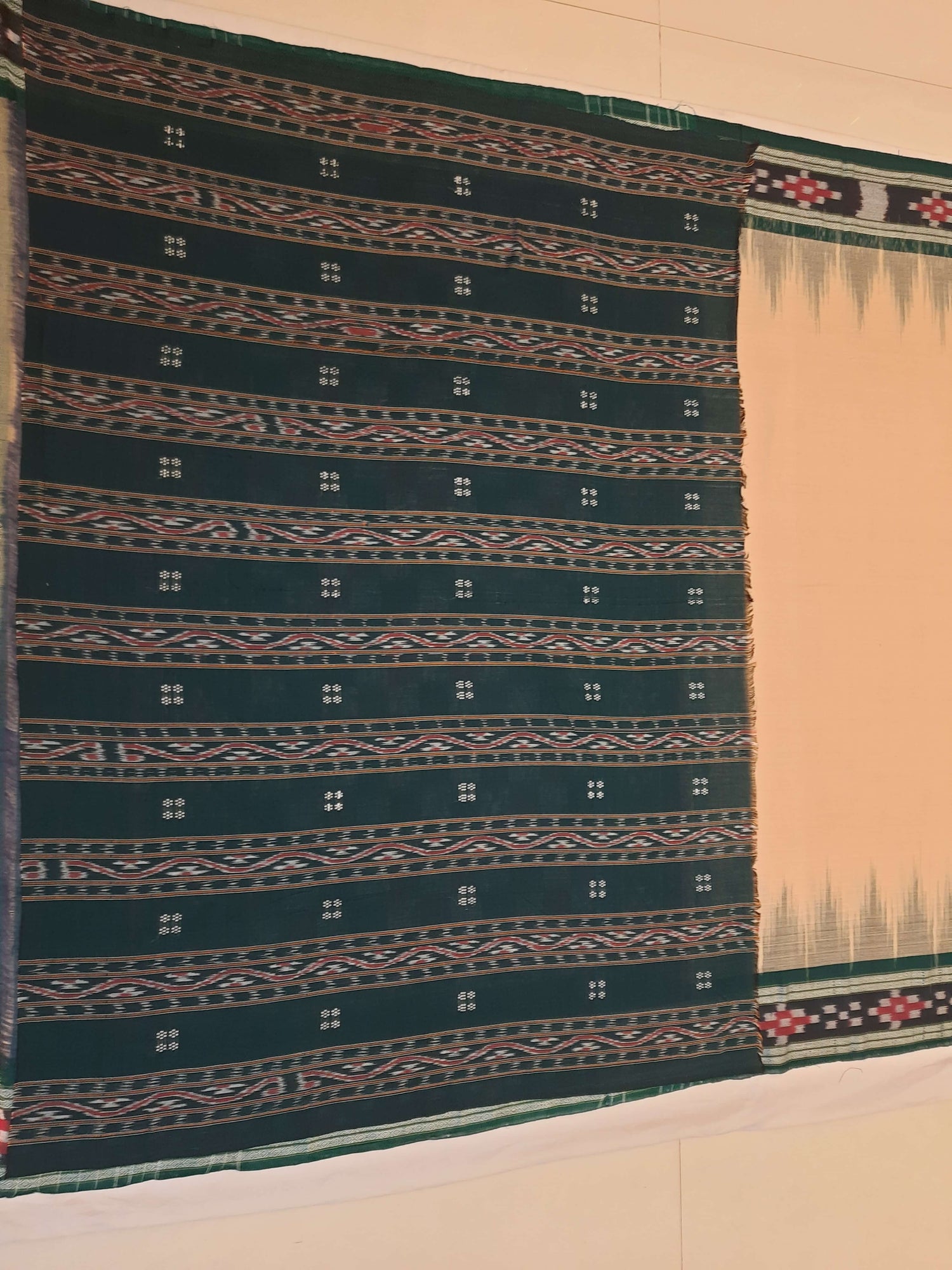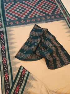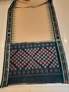 Beige with Green Cotton Odisha Ikat saree with cotton ikat blouse piece