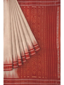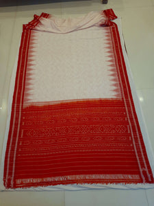 White and Red Odisha Khandua Pata Silk Saree
