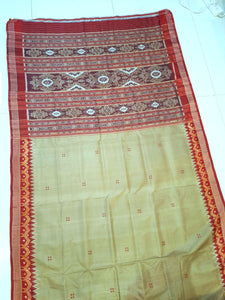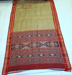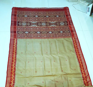 Beige with Maroon Odisha Ikat saree with cotton ikat blouse piece