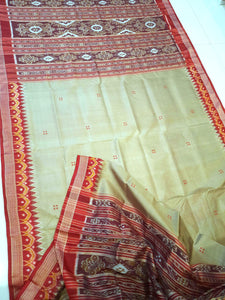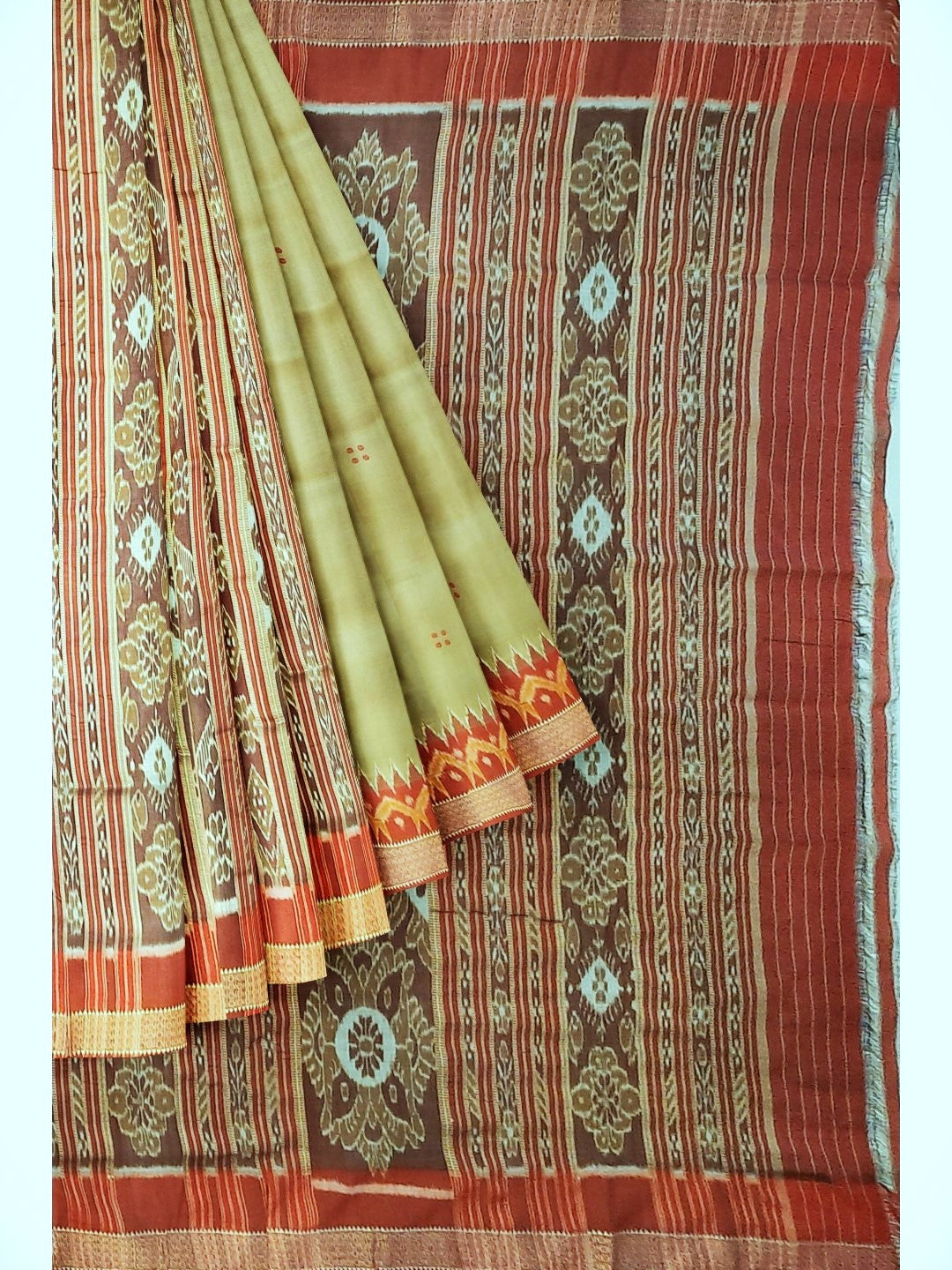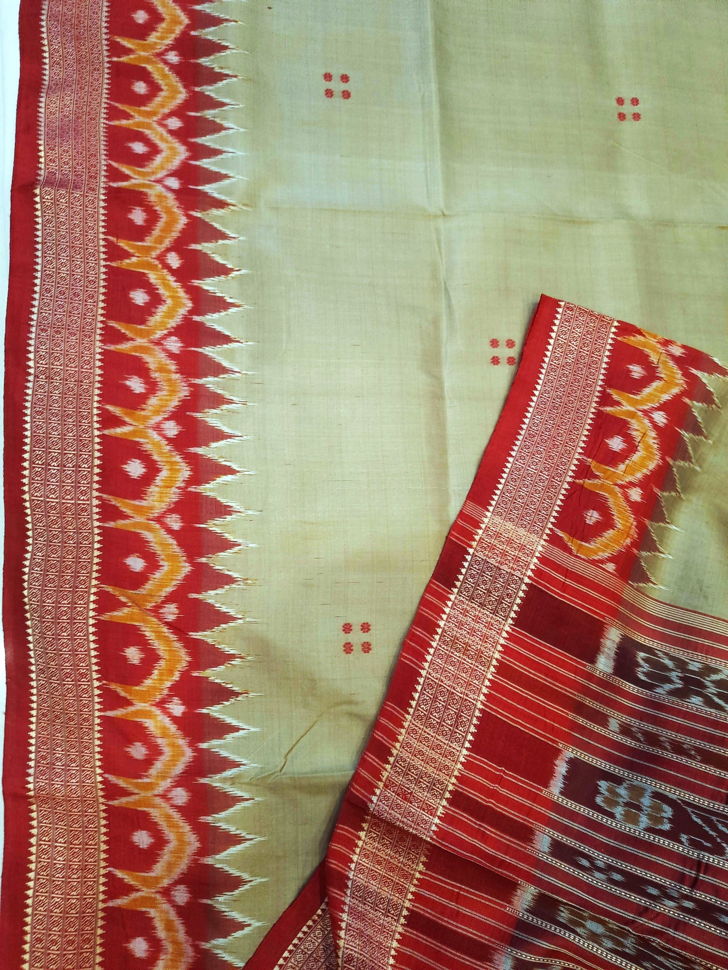 Light Greenish Beige Patli Pleats Odisha Khandua Pata Silk Saree