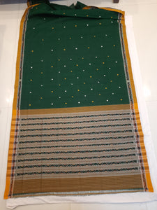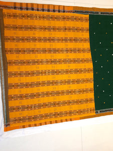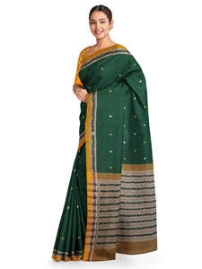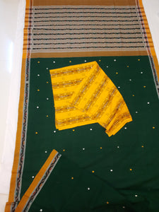 Green body Cotton Odisha Ikat saree with mix match blouse piece