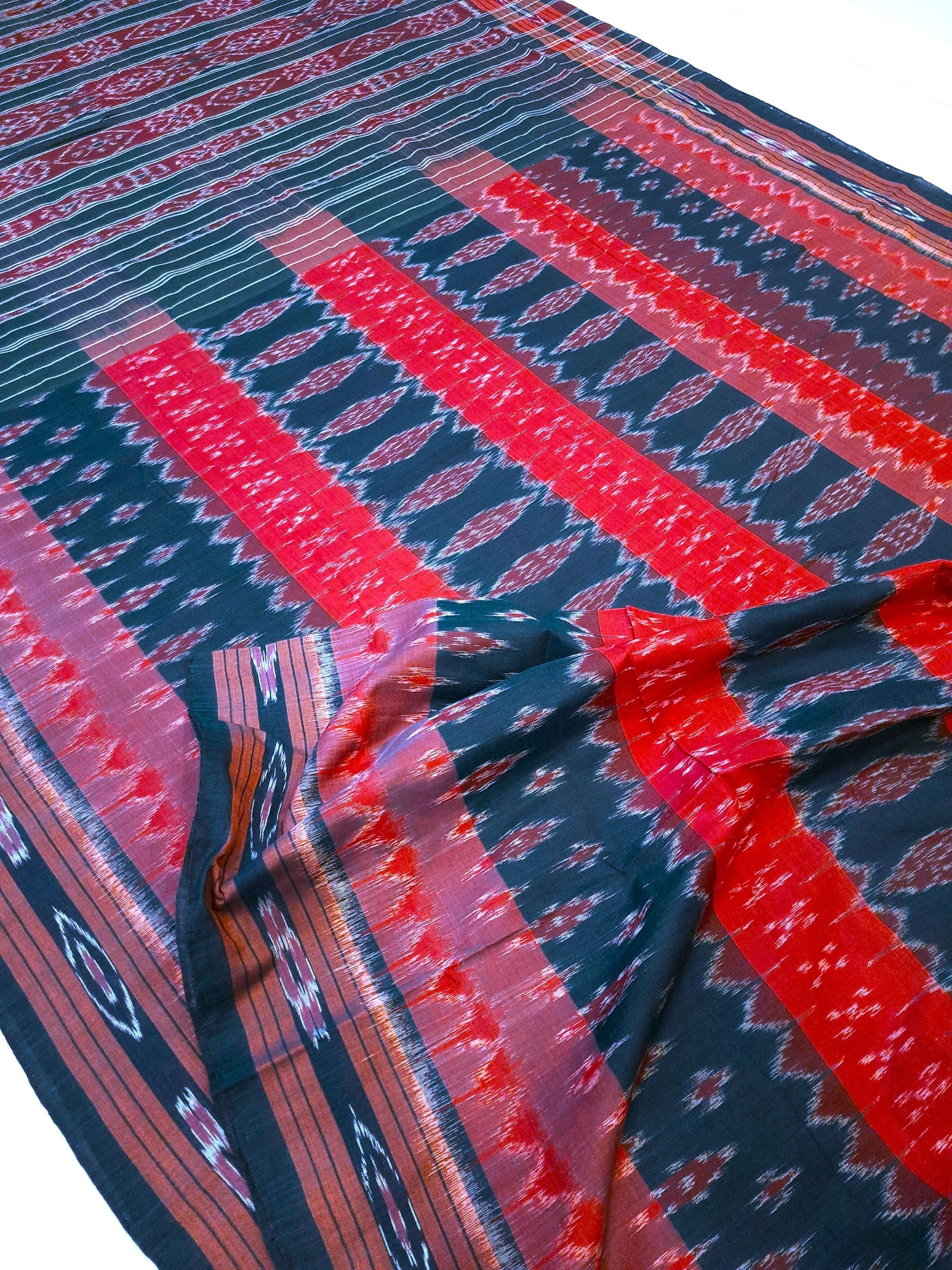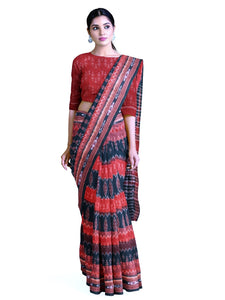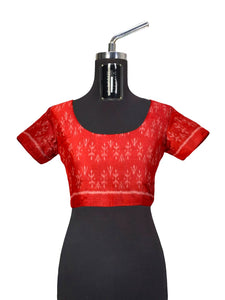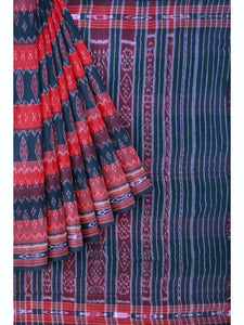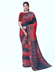 White with Red Cotton Odisha Ikat saree with mix match cotton ikat blouse piece