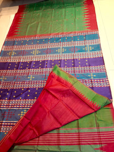 White and Red Odisha Khandua Pata Silk Saree