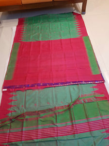 Green Pink Phoda Kumbha Berhampuri Patta Silk Saree with running blouse piece