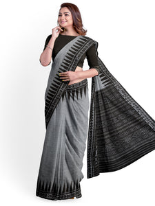 - Grey thin ikat border Cotton Odisha Ikat Saree