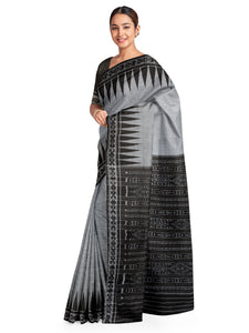 Grey Cotton Odisha Ikat saree with running blouse piece