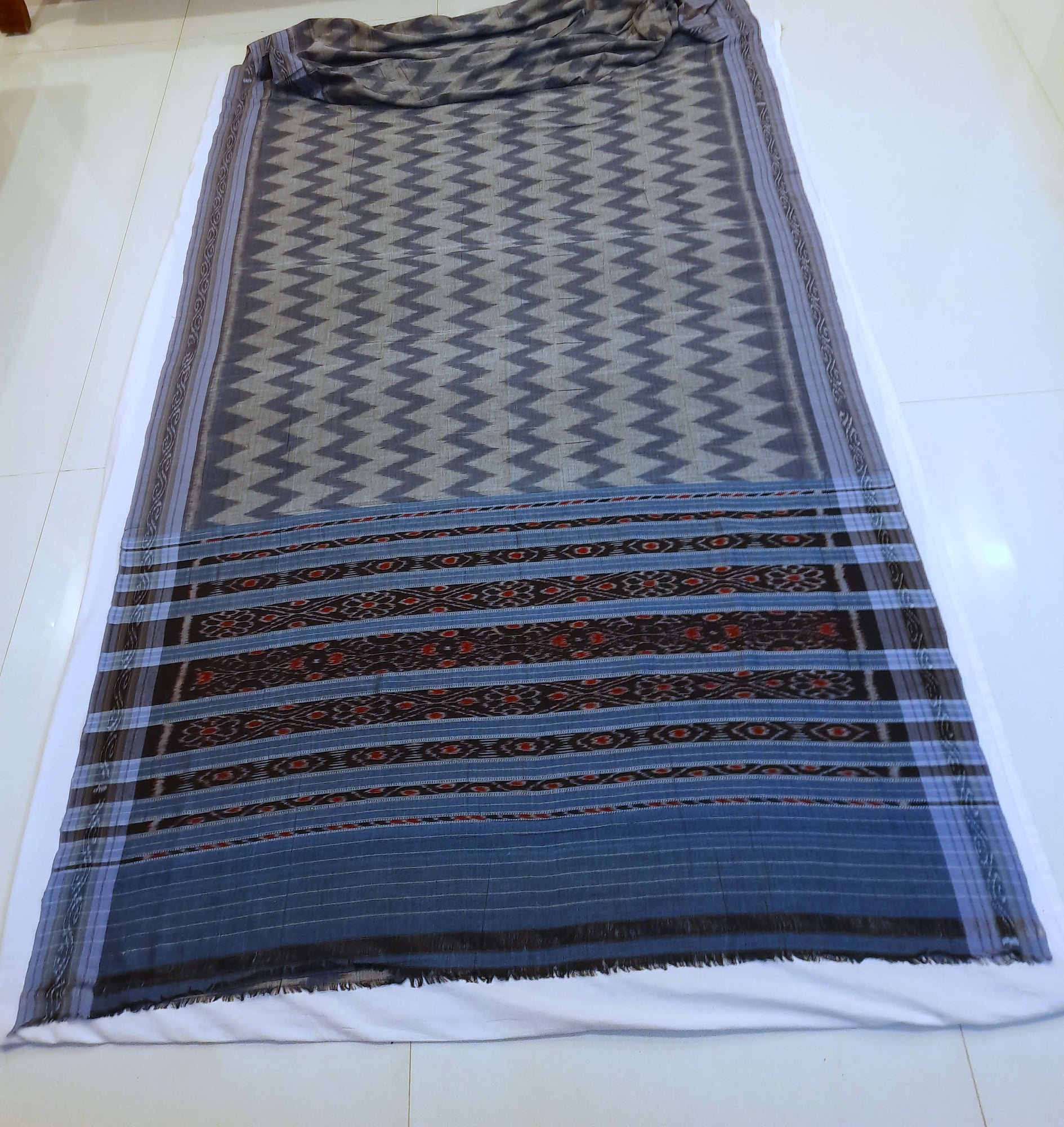 - Grey Cotton Odisha Ikat Saree