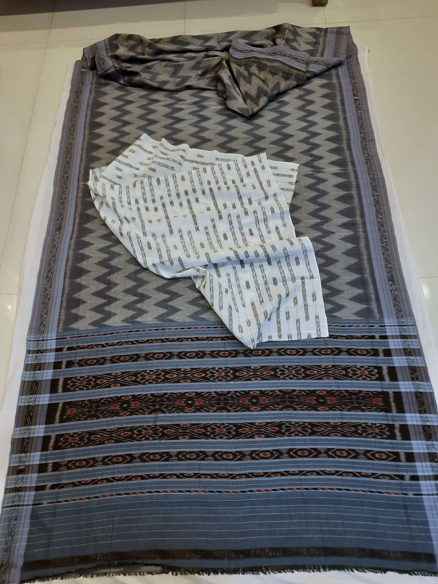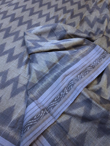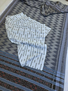 Grey Odisha Ikat saree with cotton ikat blouse piece