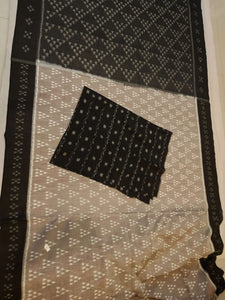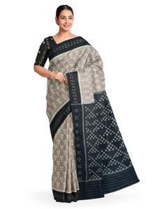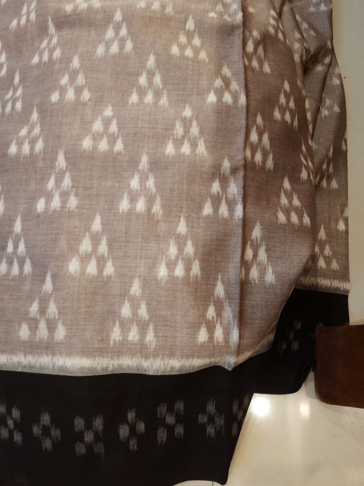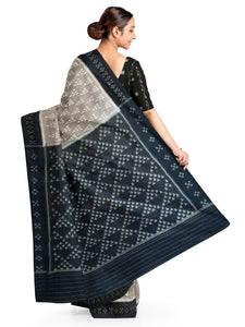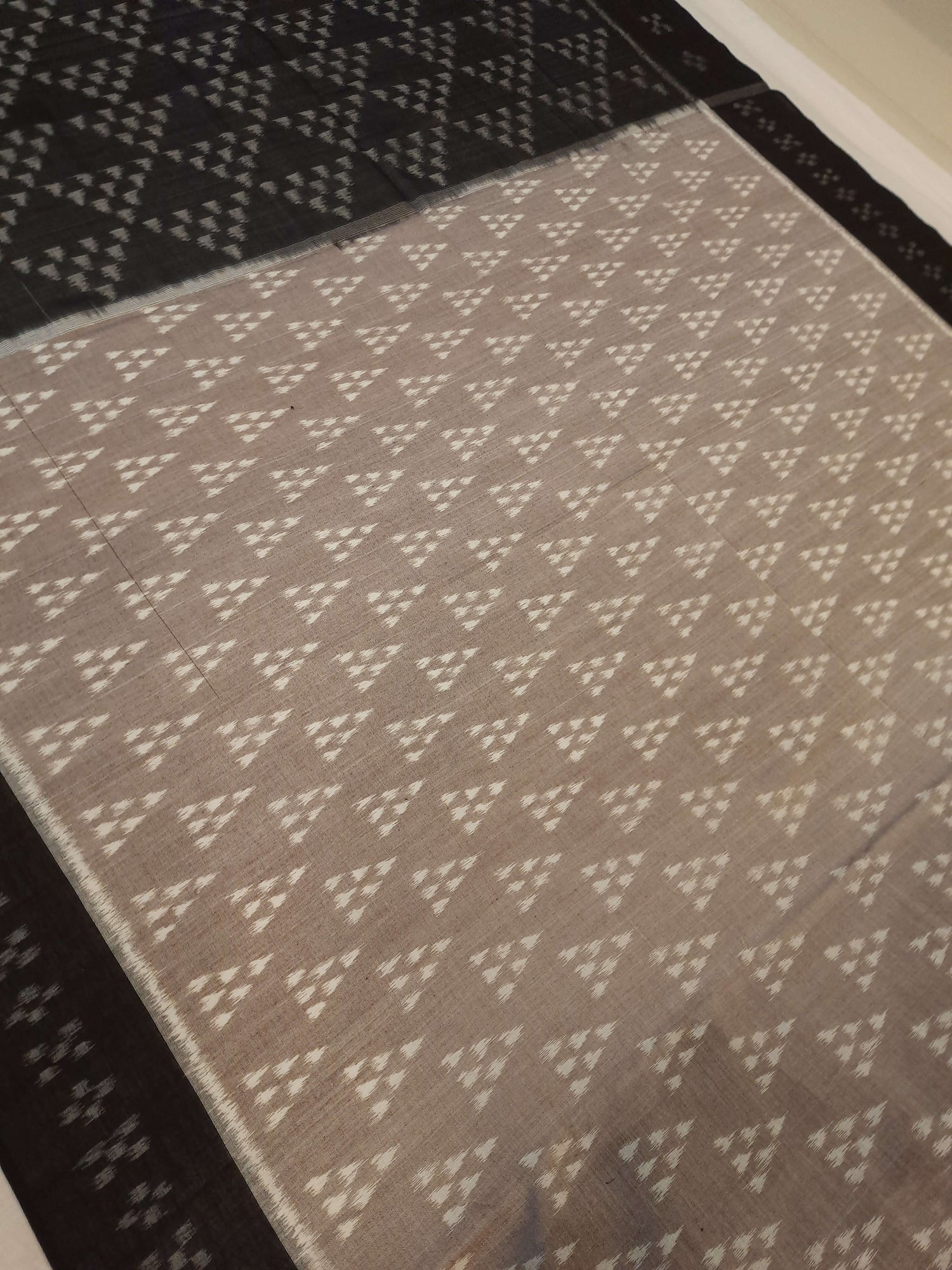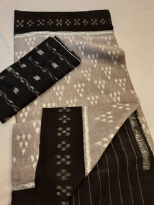 Grey Odisha Ikat saree with cotton ikat blouse piece
