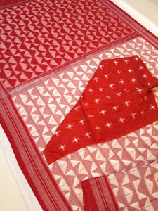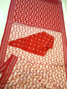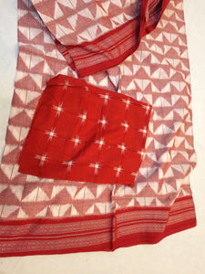 White with Red Cotton Odisha Ikat saree with mix match cotton ikat blouse piece