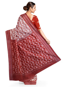 Beige with Maroon Cotton Odisha Ikat saree with mix match cotton ikat blouse