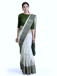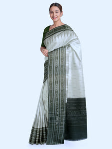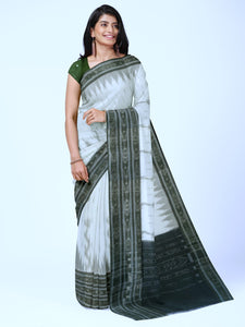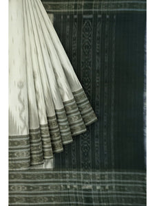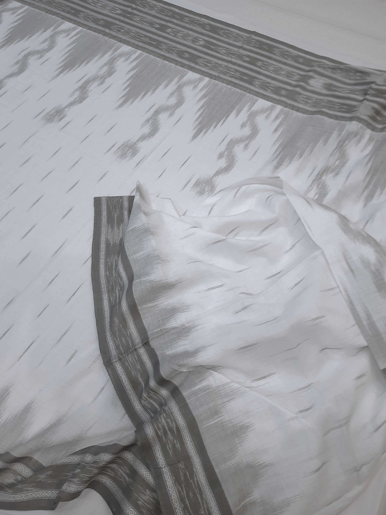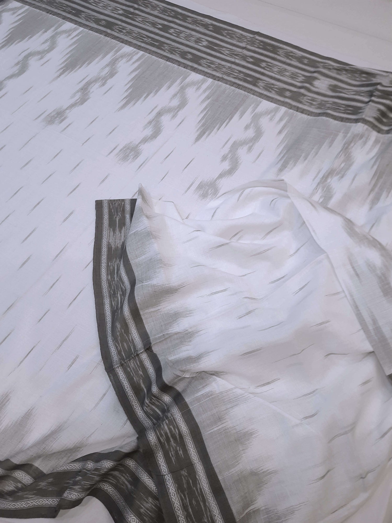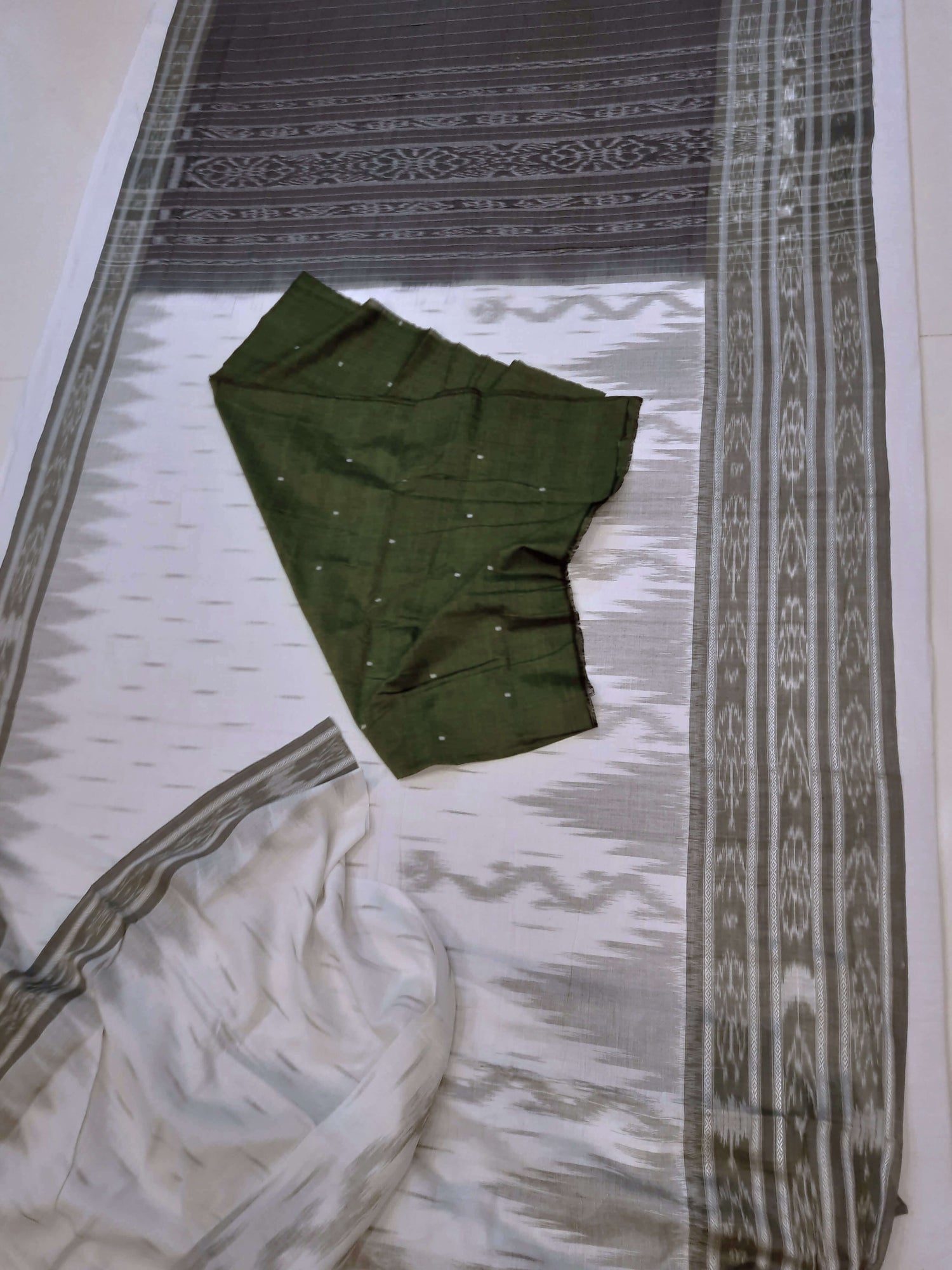 White wide border Cotton Odisha Ikat saree with mix match cotton ikat blouse