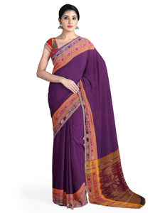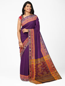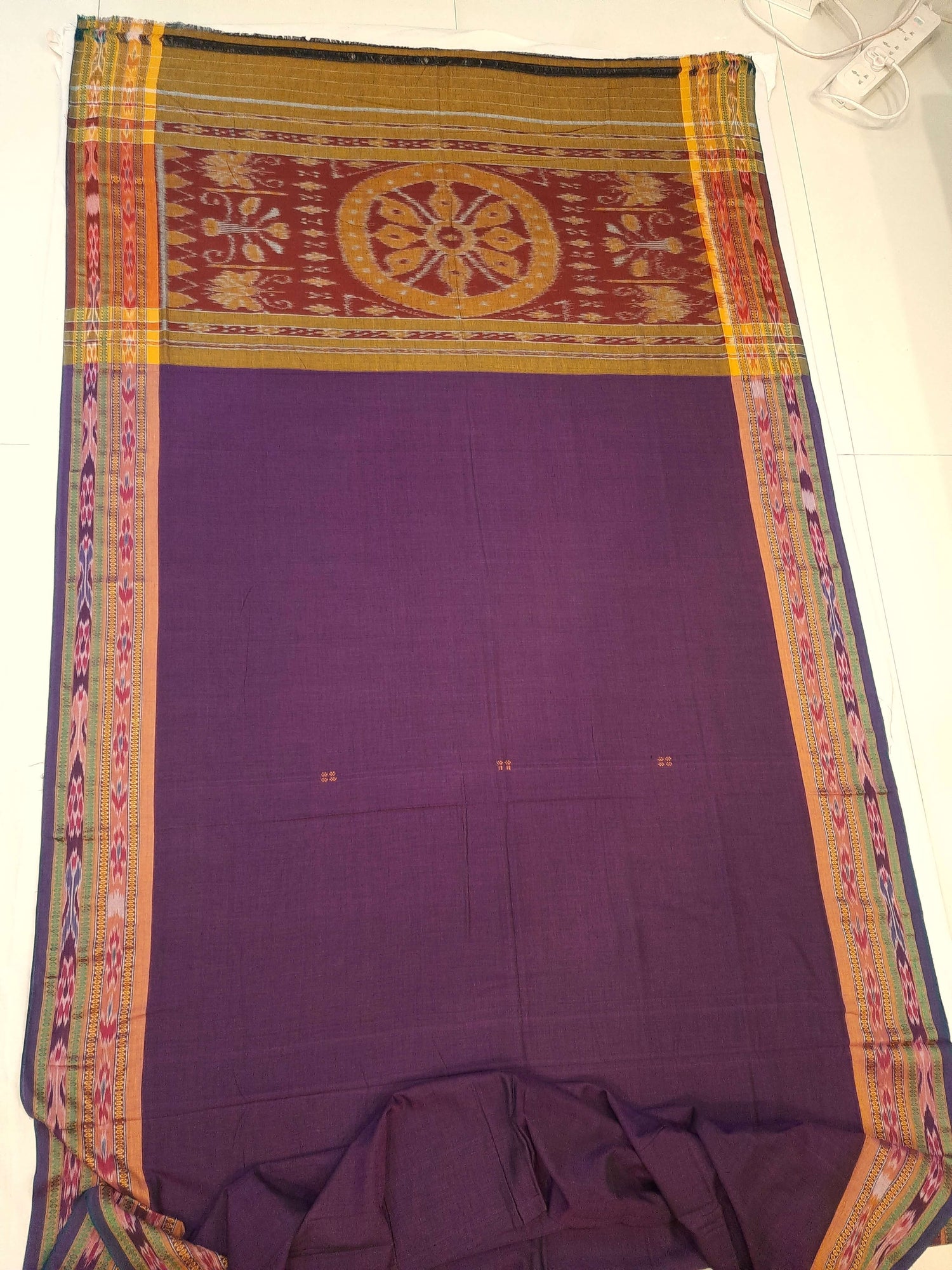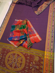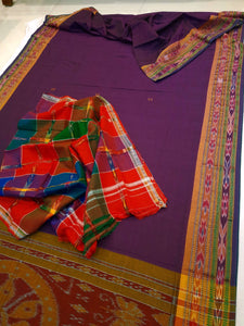 Violet Cotton Odisha Ikat saree with mix match cotton ikat blouse