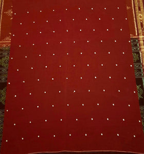 White with Red Cotton Odisha Ikat saree with mix match cotton ikat blouse piece