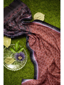 Pinkish Brown Cotton Odisha Ikat saree with mix match cotton ikat blouse
