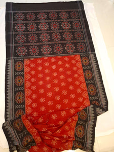 • Red Cotton wide border Odisha Ikat Saree