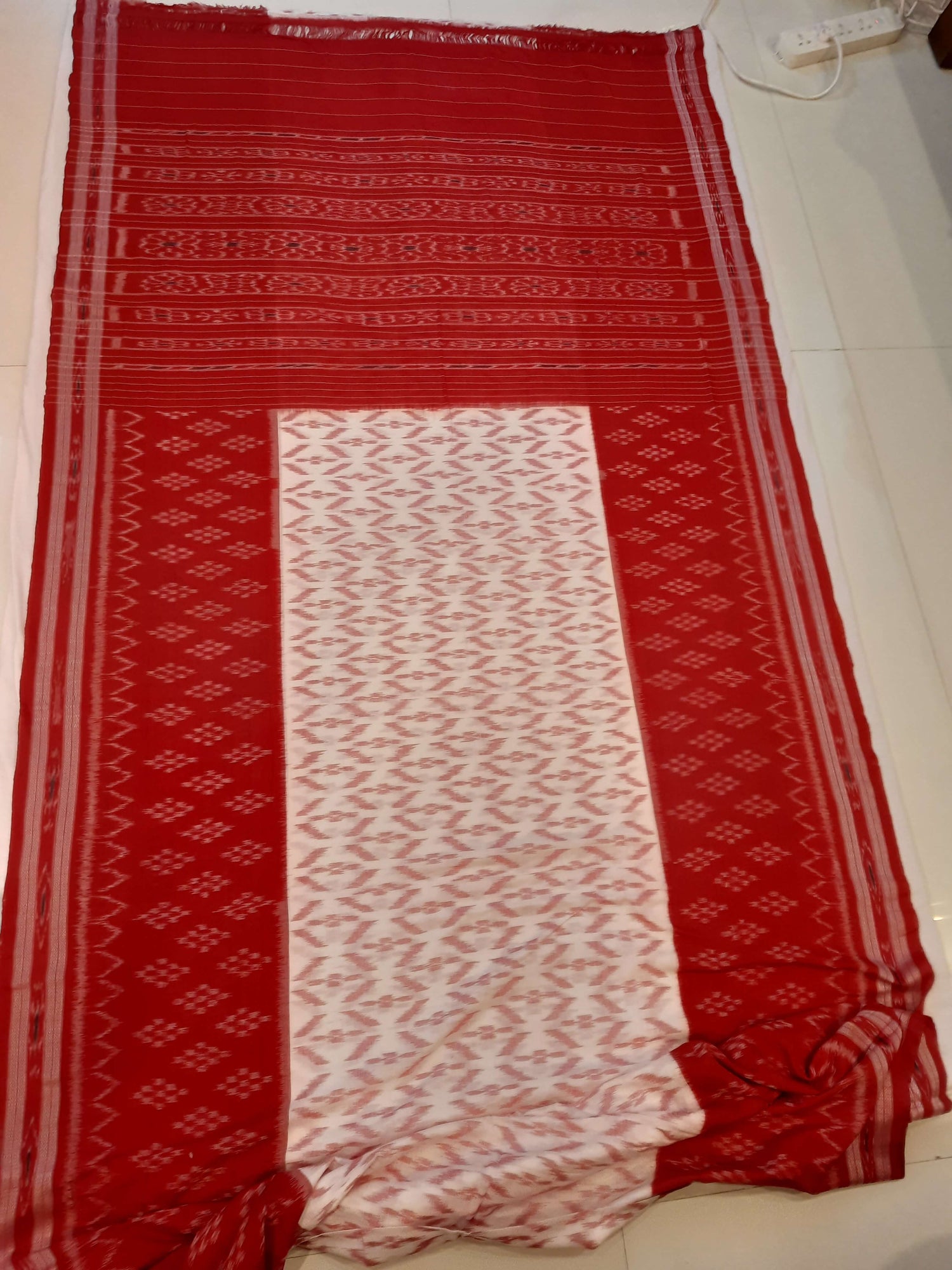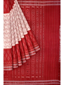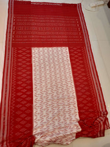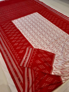 White Red wide border Cotton Odisha Ikat saree with mix match cotton ikat blouse piece