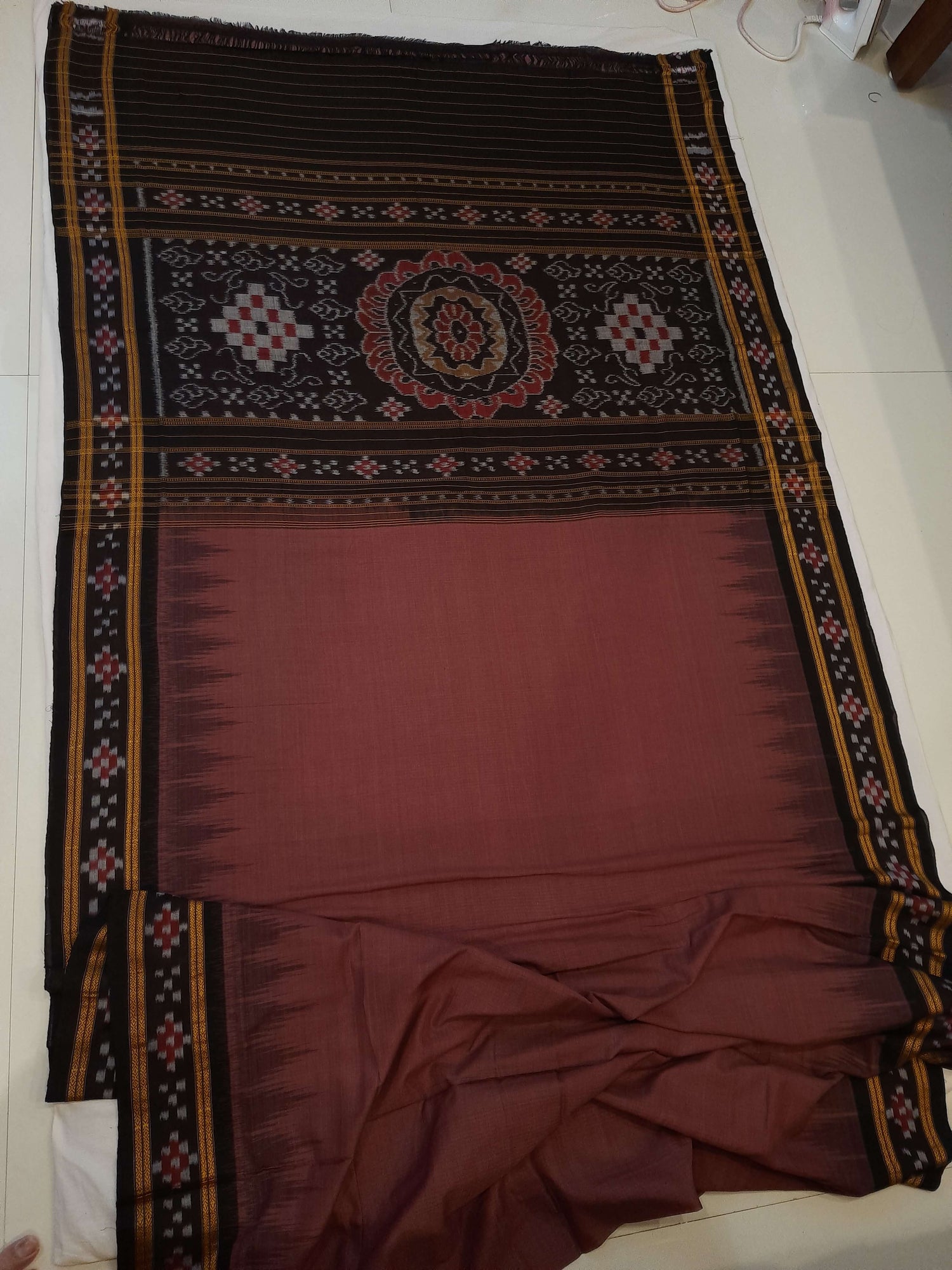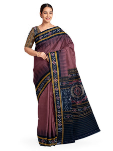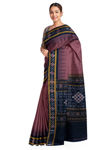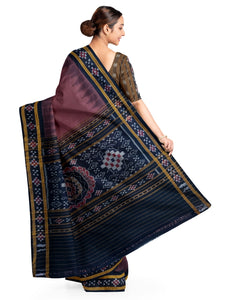 Dark Wine Cotton Odisha Ikat saree with cotton ikat blouse piece
