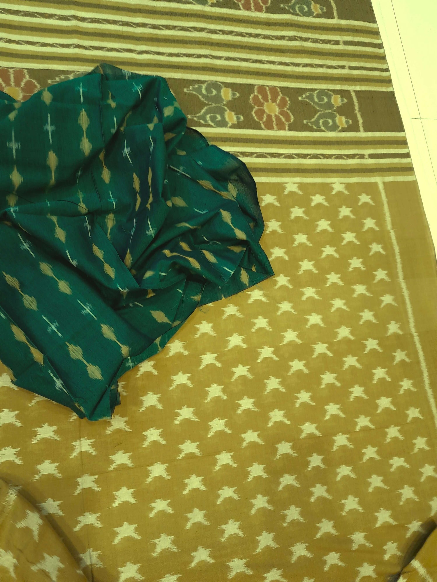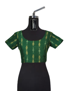 Mustard Green Cotton Odisha Ikat saree with mix match cotton ikat blouse piece