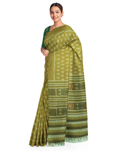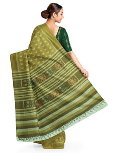 - Mustard Green single colour Cotton Odisha Ikat Saree