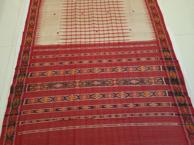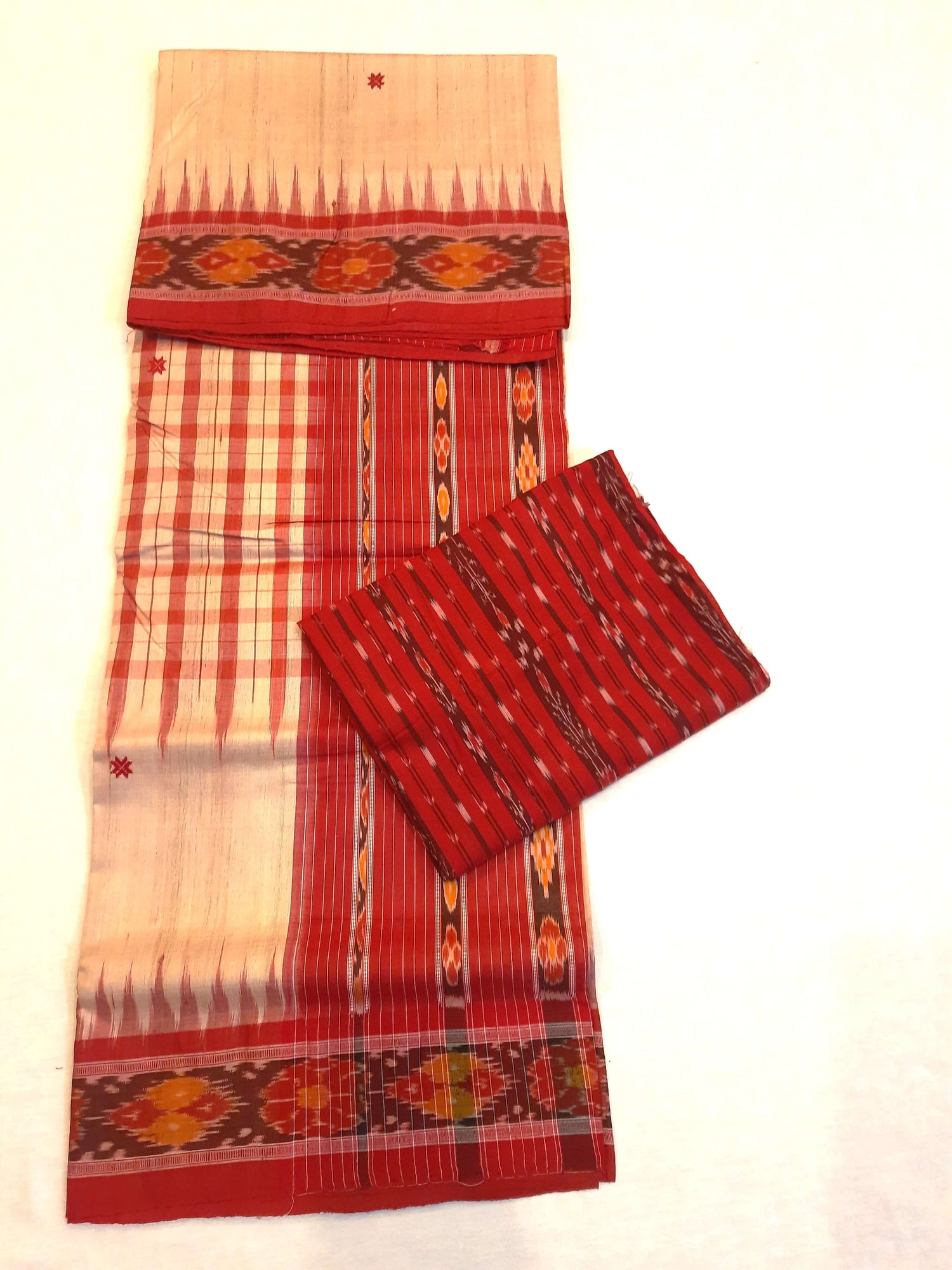 • Tussar Silk saree with Sambalpuri Ikat border and aanchal
