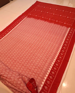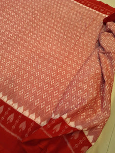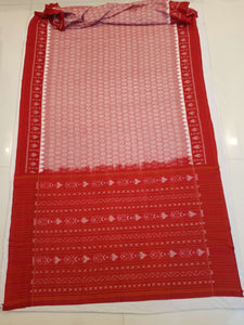 White with Red Cotton Odisha Ikat saree with mix match cotton ikat blouse piece