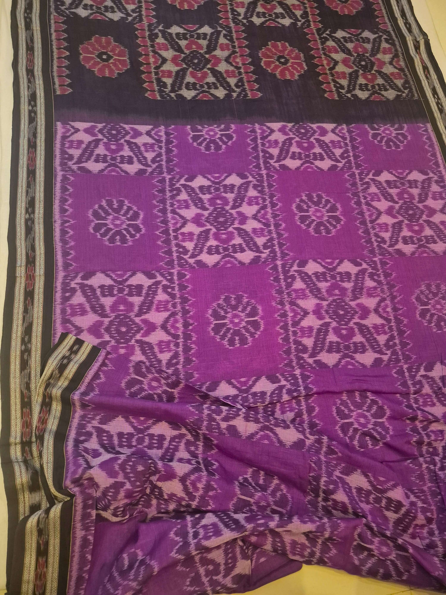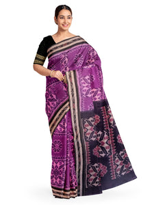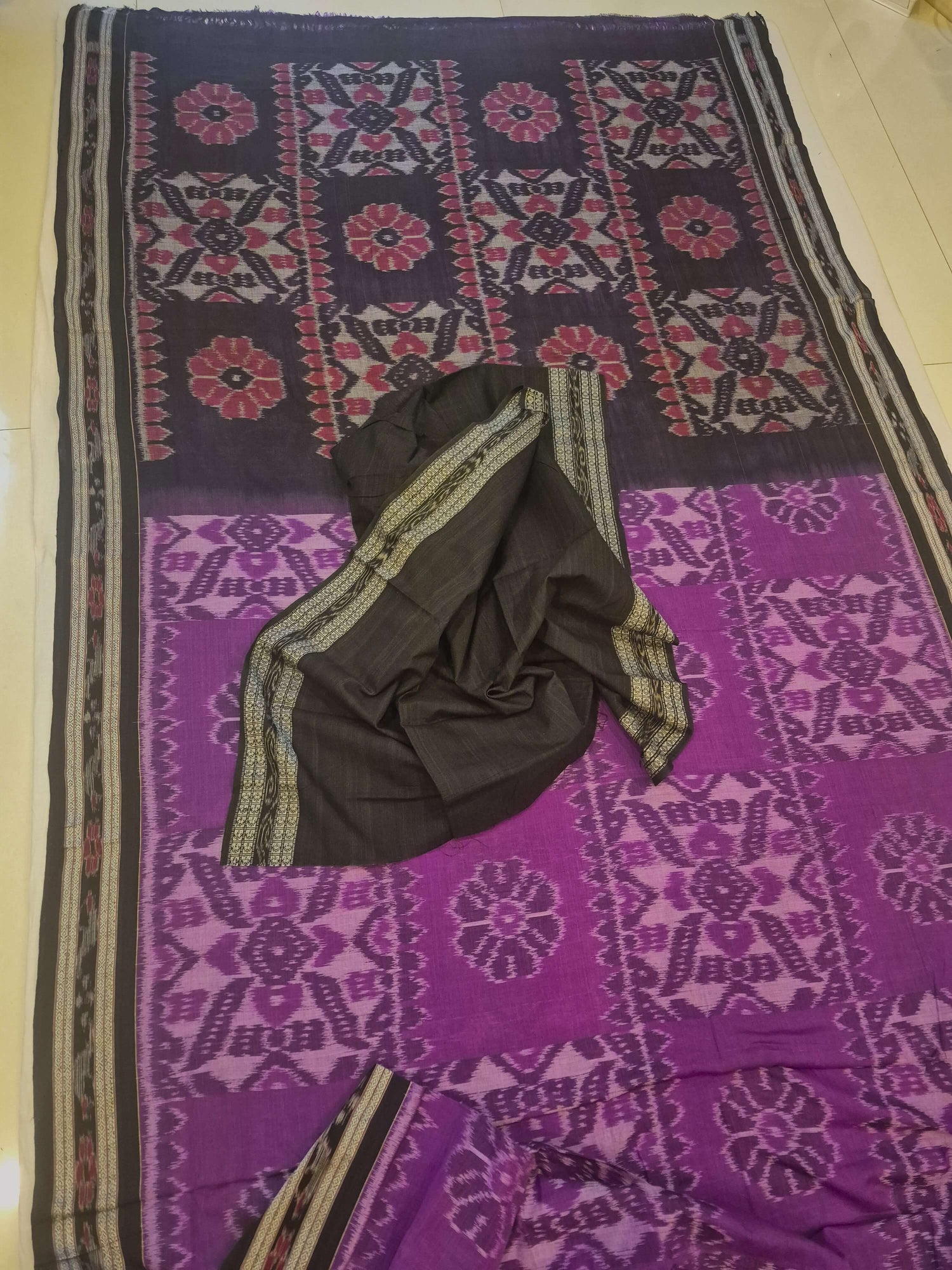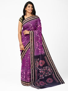 Violet coloured Odisha Ikat saree with cotton ikat blouse piece