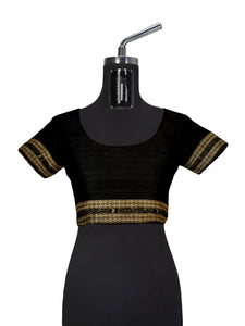 - handwoven Saree with woven motifs across body contrast black border and traditional palu