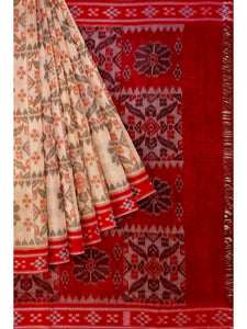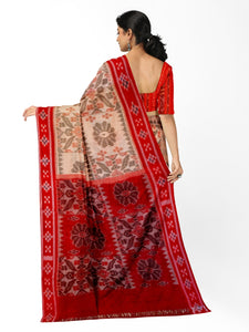 - Beige with Red Cotton Odisha Ikat Saree