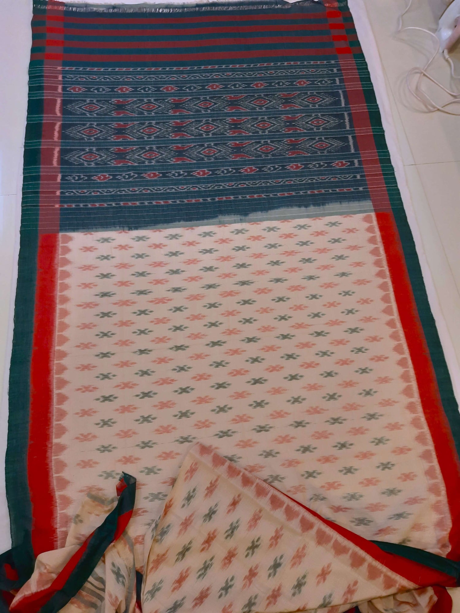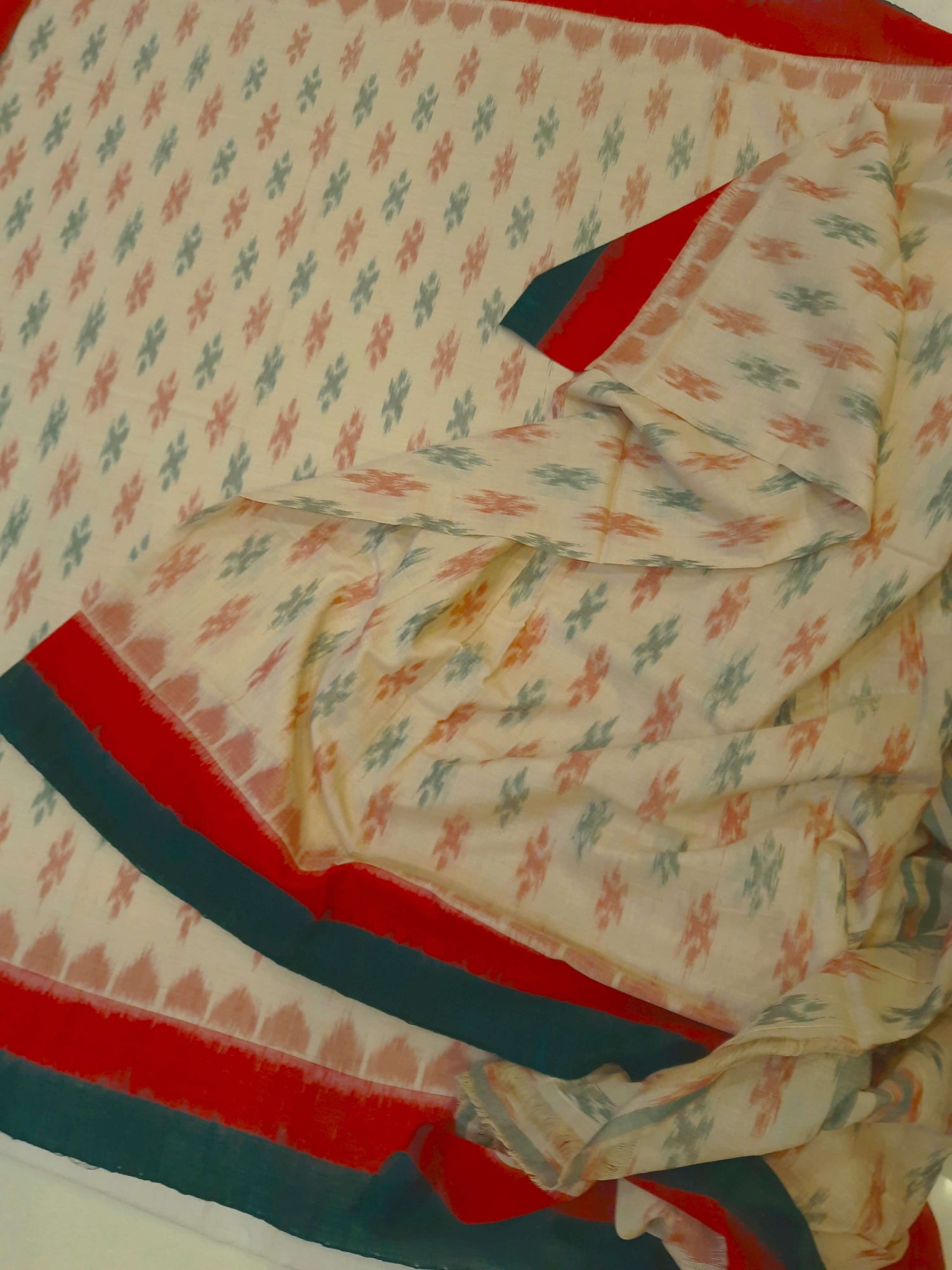 - ❤️💚 Red & Green double border with Beige body Ikat Elegance 💚❤️