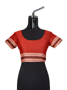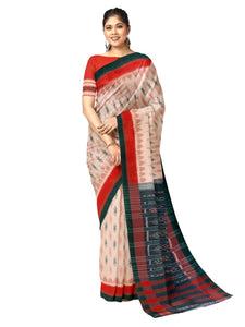 White with Red Cotton Odisha Ikat saree with mix match cotton ikat blouse piece