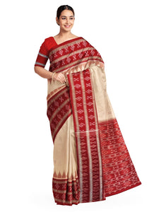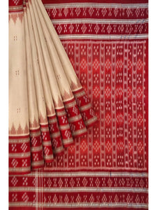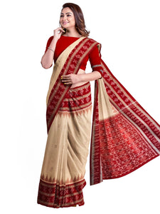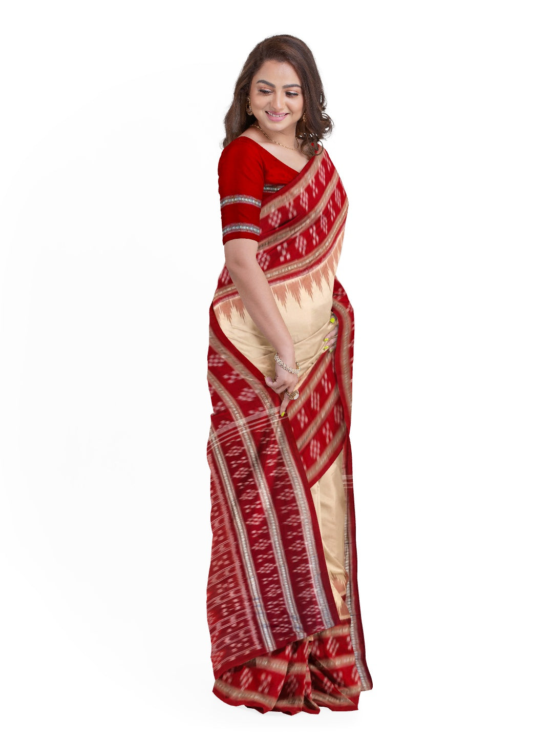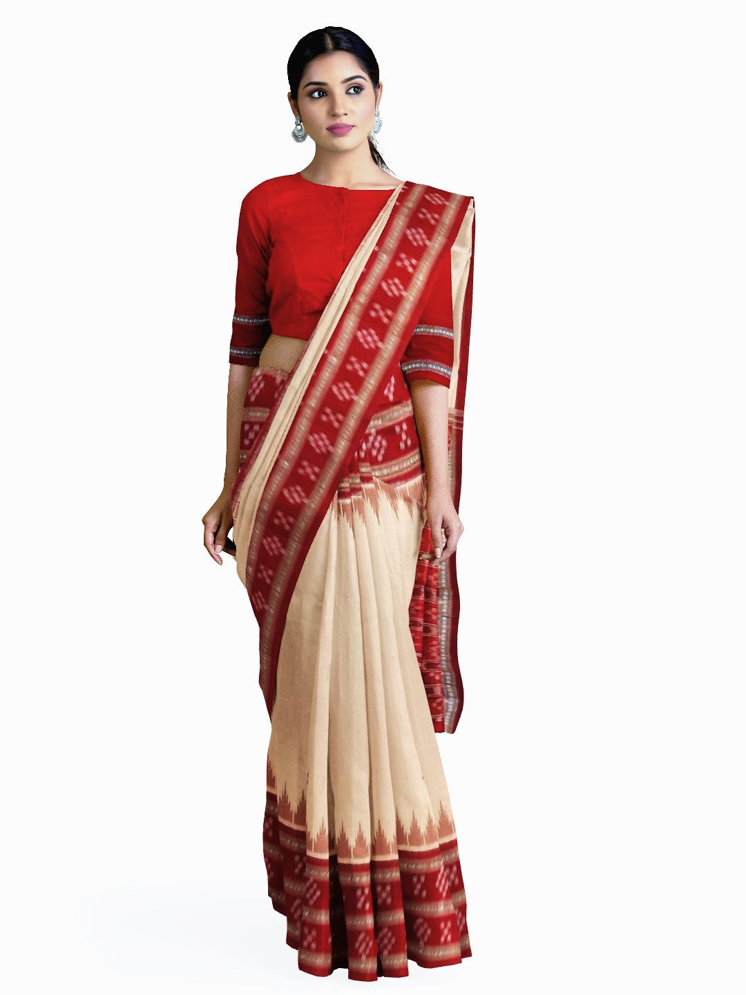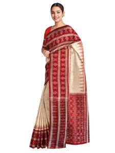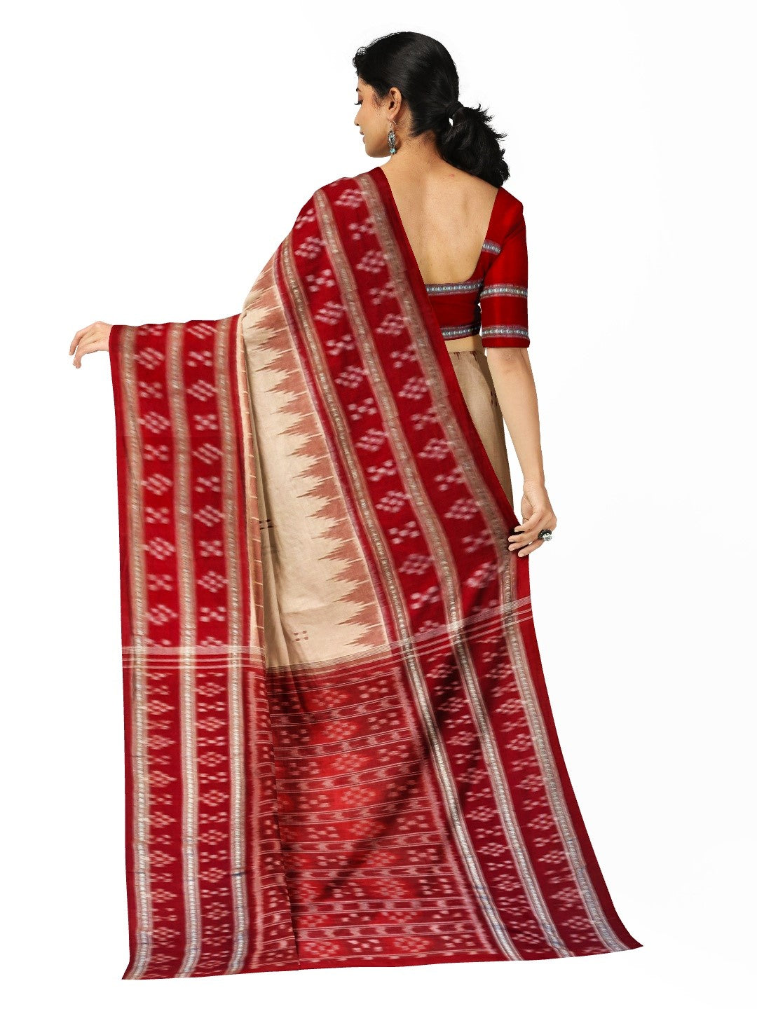 - Beige with Maroon Cotton Odisha Ikat Saree with double pasapalli pattern border