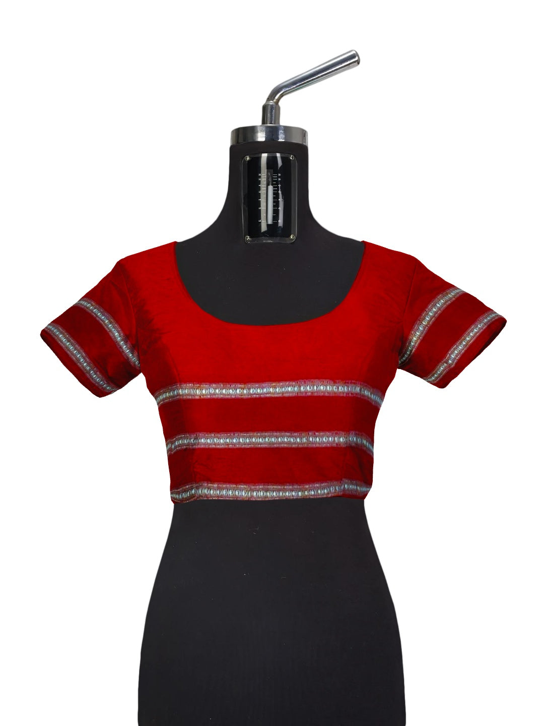White with Red Cotton Odisha Ikat saree with mix match cotton ikat blouse piece
