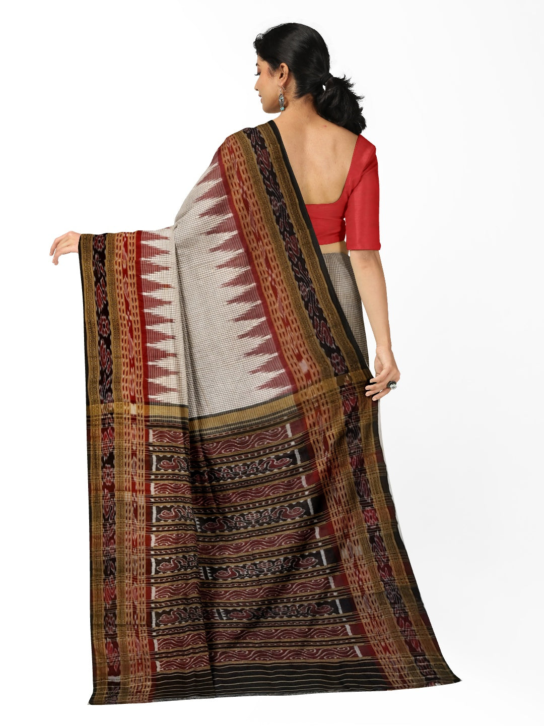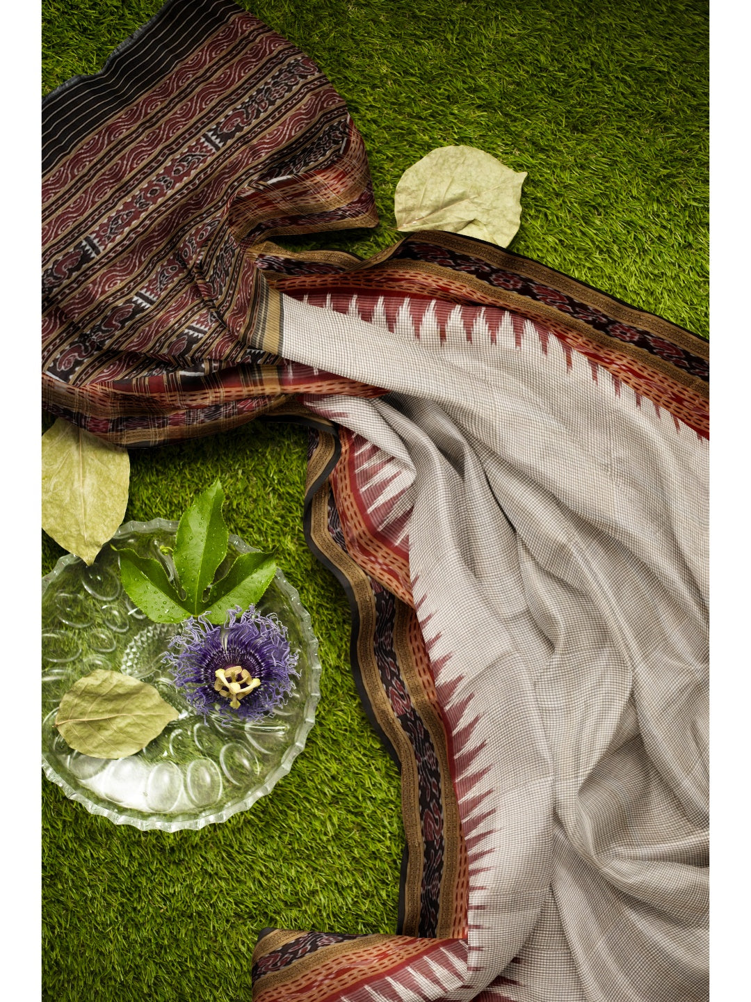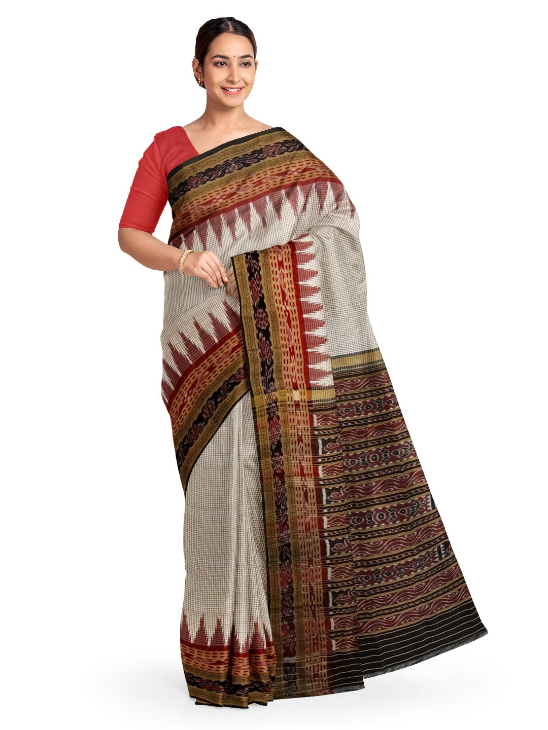 Beige with Maroon Cotton Odisha Ikat saree with mix match cotton ikat blouse