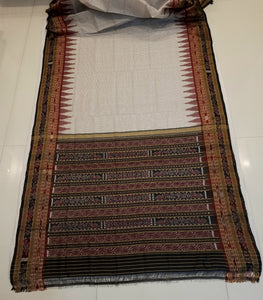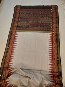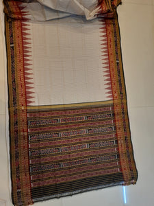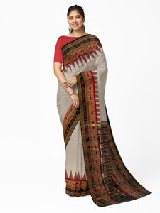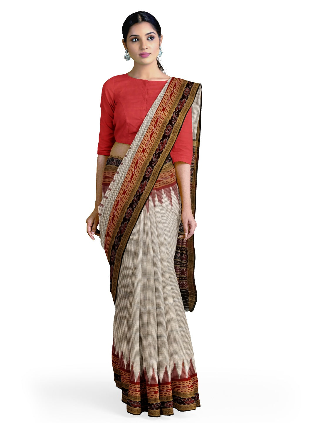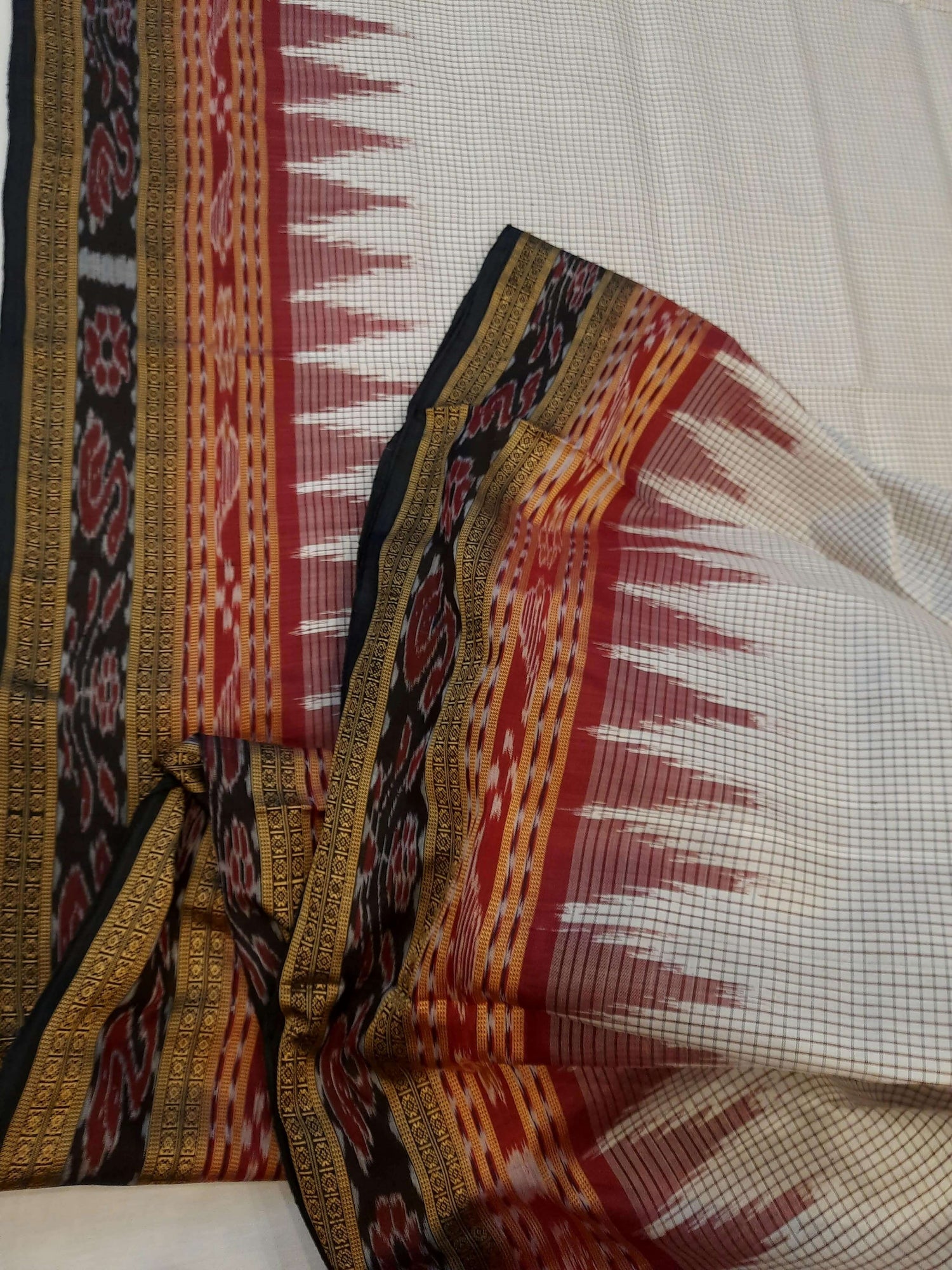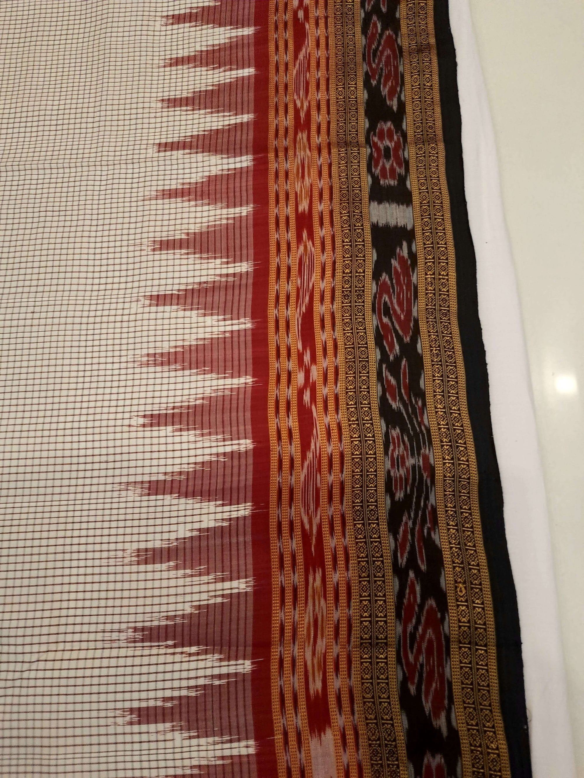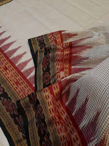 White with Red Cotton Odisha Ikat saree with mix match cotton ikat blouse piece