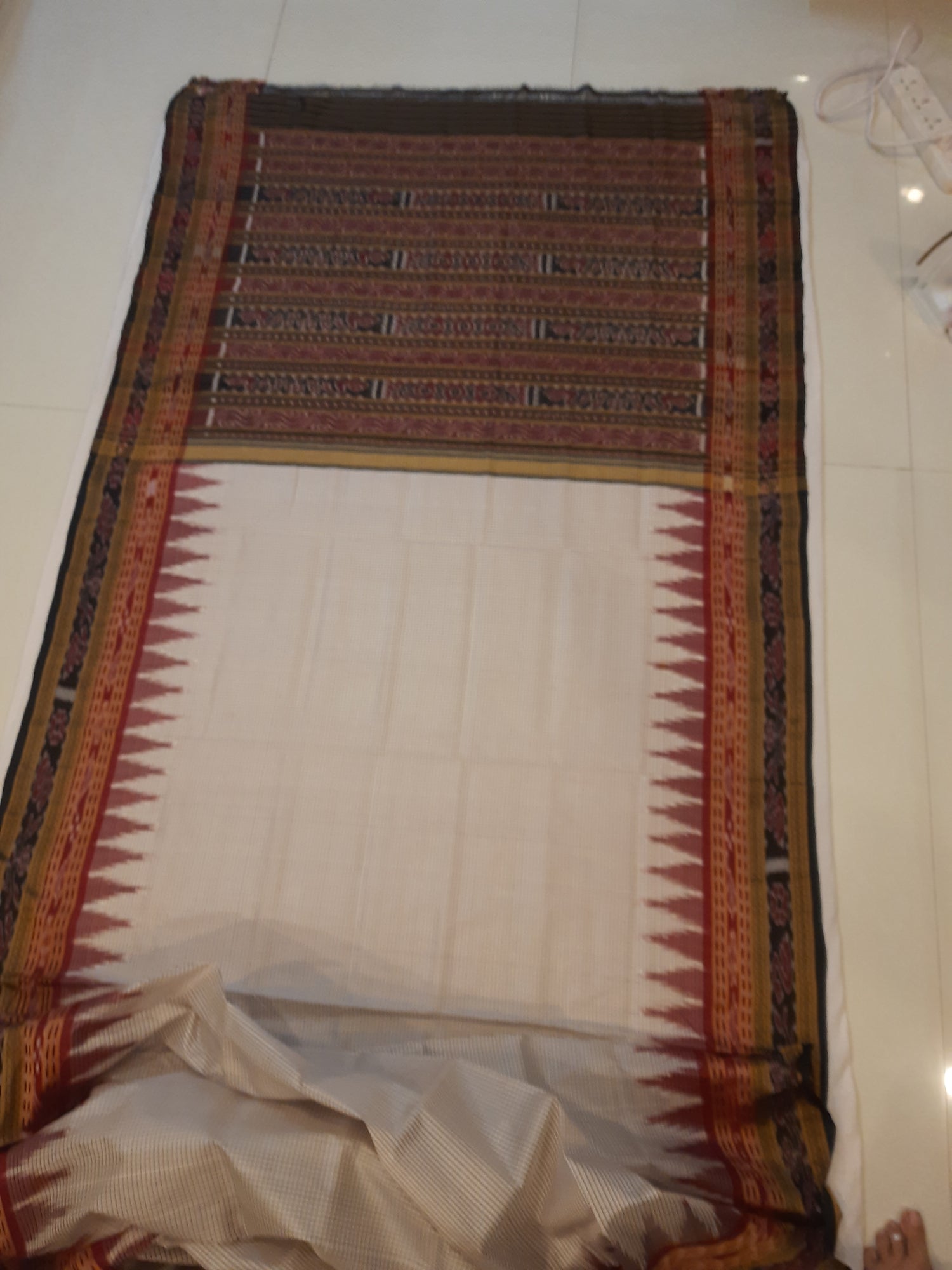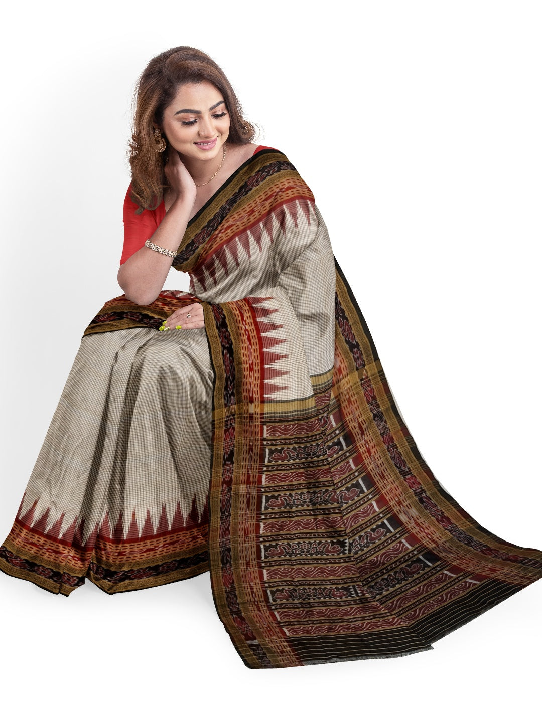 Beige Sachipar pattern Odisha Khandua Pata Silk Saree